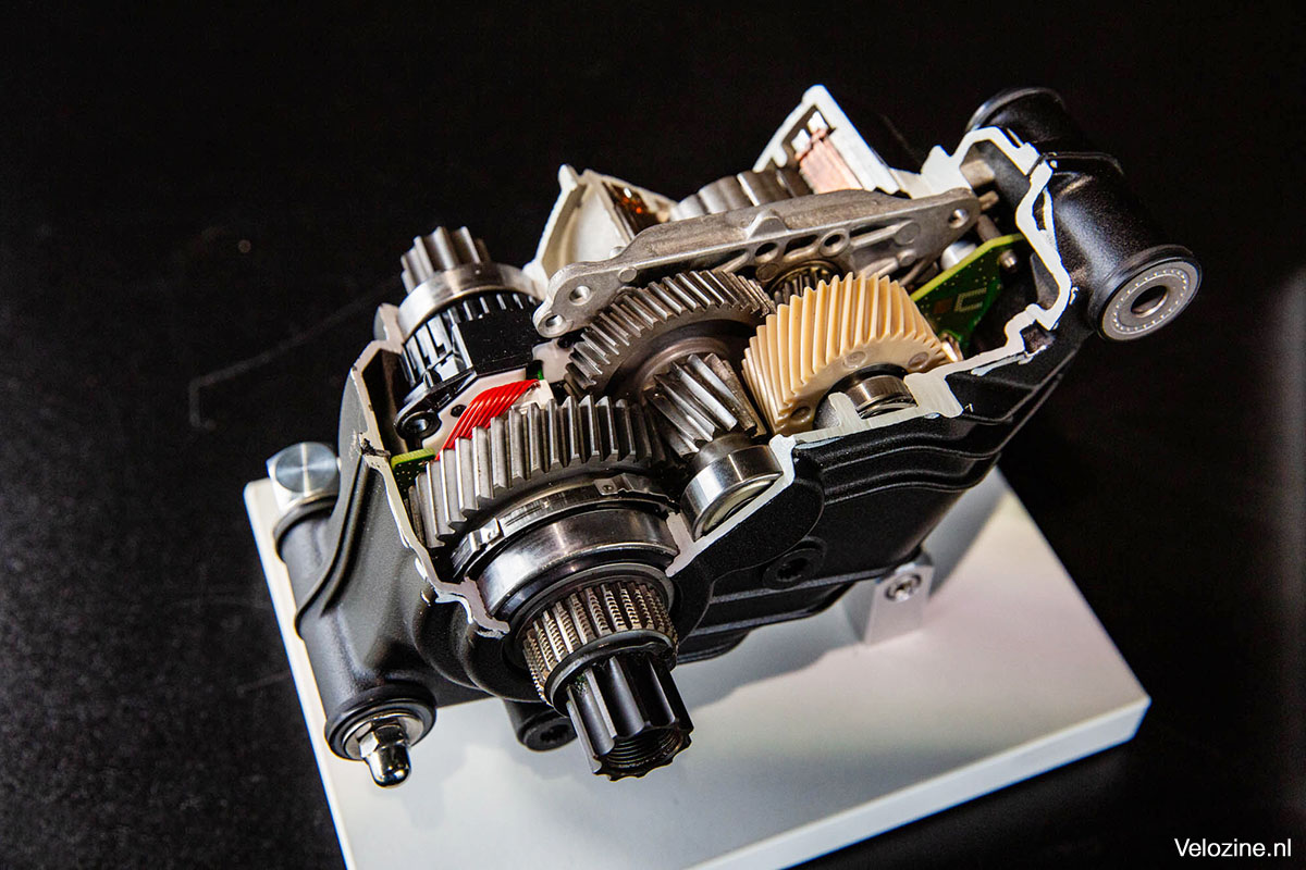 Van buitenaf lijkt de nieuwe Bosch CX van de vijfde generatie behoorlijk op z’n voorganger. De vorm en grootte zijn vergelijkbaar. En ook de cijfers zijn niet afwijkend: de nieuwe motor levert dezelfde 85 newtonmeter, hetzelfde 600 watt piekvermogen en dezelfde maximale ondersteuning van 340 procent als de vorige CX-aandrijving. Toch is de nieuwe motor echt anders. Door aanpassingen in de behuizing en het binnenwerk hebben de technici van Bosch honderd gram van het gewicht af kunnen schaven; van 2,9 kilo naar 2,8 kilo. Het aantal punten waarmee de motor aan het frame wordt gekoppeld is verminderd; net als de huidige SX-motor beschikt de nieuwe CX nu over twee in plaats van drie montagepunten. De motor is hierdoor makkelijker te monteren en te verwijderen en biedt fabrikanten bovendien meer vrijheid bij het ontwerpen van hun frames.