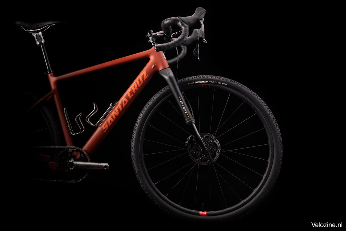 Blijkbaar heeft dat laatste Cane Creek er niet van weerhouden hun interpretatie van het upside-down-principe voor gravelbikes in de markt te zetten: de Invert. De stuurbuis en de kroon zijn van van carbon, maar de bovenpoten van aluminium. Maar het geheel is dusdanig samengebracht en afgewerkt dat je niet ziet waar het carbon eindigt en het aluminium begint. Ook de 30 millimeter onderpoten zijn van aluminium.