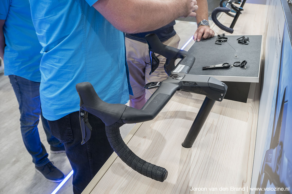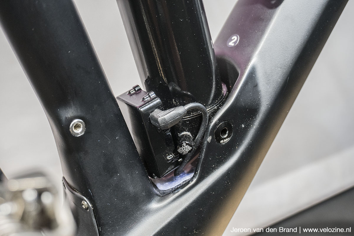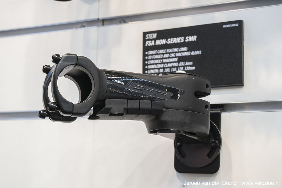 FSA heeft diverse opties, zoals deze stuurpen waar je – toegegeven: met een ‘simpel kapje’ – je kabels/leidingen ‘zo snel mogelijk’ uit het zicht kunt krijgen. Werkt uiteraard alleen bij frames waar de routing via het balhoofd naar binnen kan. Iets dat je in de komende jaren beslist vaker gaat zien…
