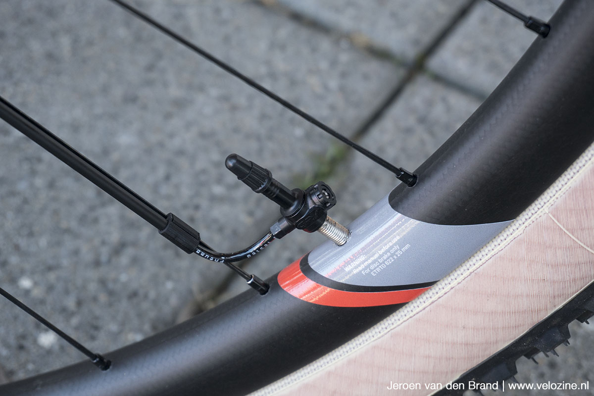 Via een slangetje – gemonteerd aan een spaak – wordt vervolgens de band opgepompt of wordt er druk afgelaten.