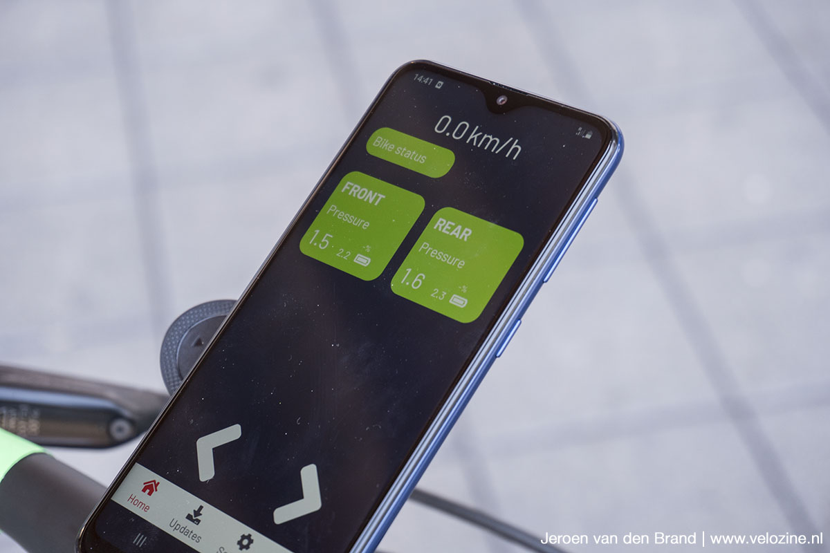 … en via een smartphone kun je de settings bepalen en aflezen wat de actuele druk is. Tijdens de korte testrit merkte ik niet echt iets van het pompen, behalve dat de banden dus harder werden. De testrit smaakt in elk geval naar meer!