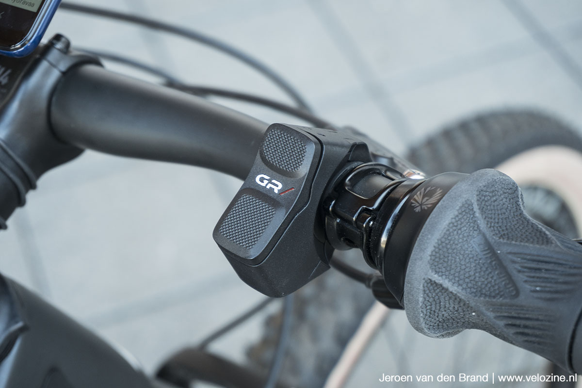 ‘Onder in de beugel’ van de Vibe Evo is een rubberen handvat gemonteerd, met een geïntegreerde knoppositie voor de sprintshifters van Shimano en bovenop nog een extra plek om je duim op te laten rusten.