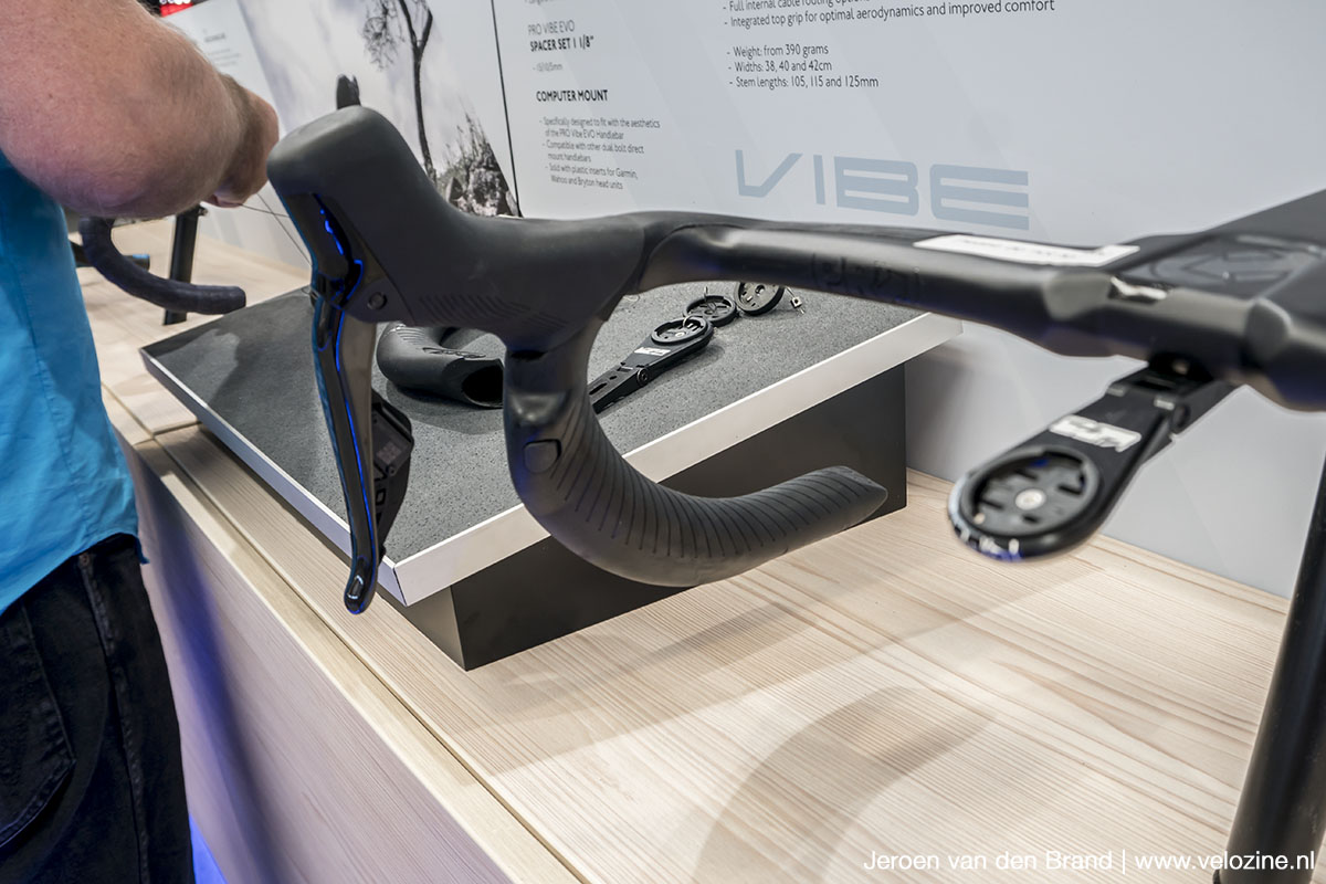 Pro lanceerde net voor de EuroBike de Vibe Evo. Een interessante ’take’ op een racebocht: op de bovenzijde zijn rubber inserts aangebracht, waardoor je geen stuurtape nodig hebt én toch extra comfort hebt.