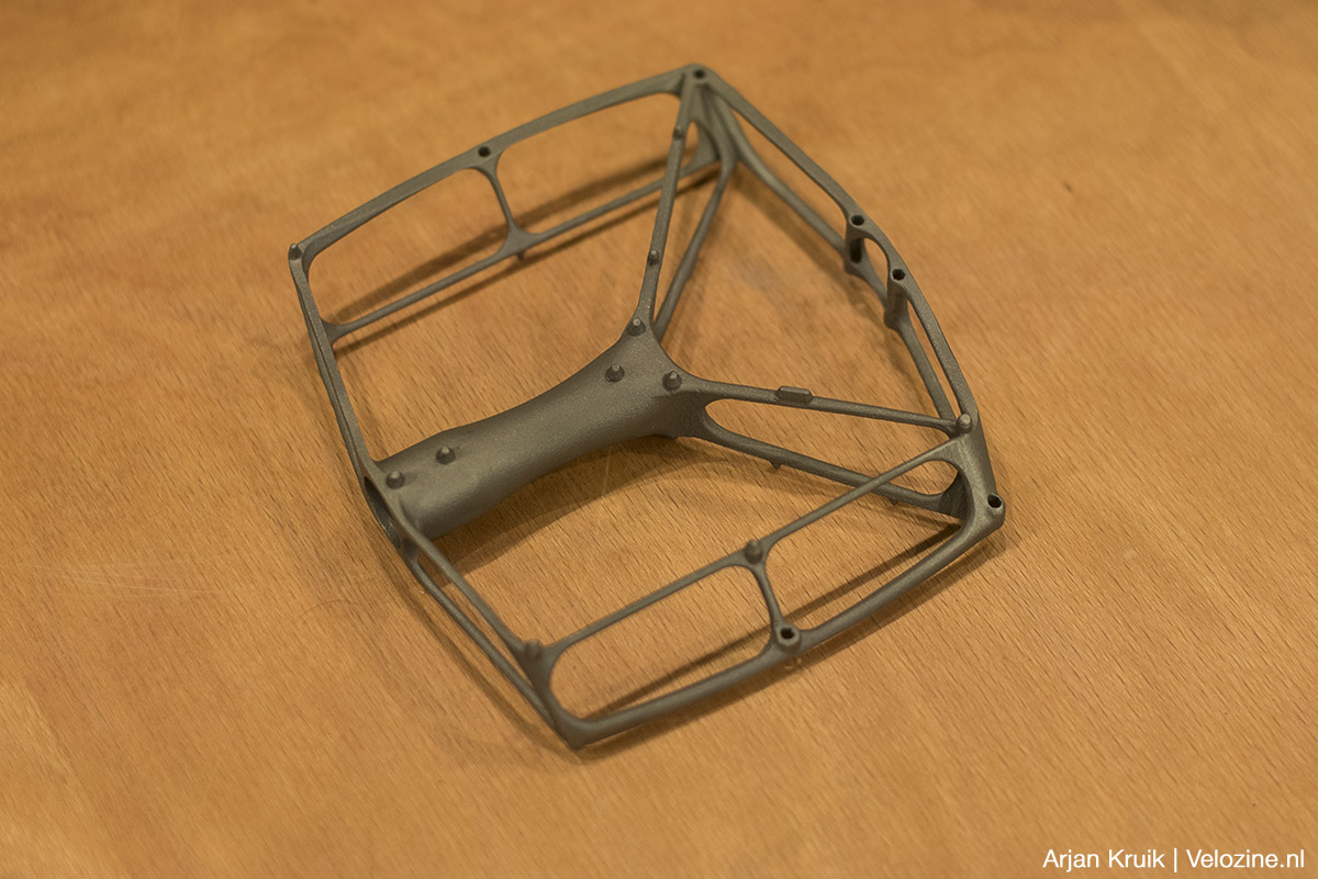 Printen maakt het mogelijk om vormvrijer te zijn. Dunne, gekromde vormen zoals bij dit titanium pedaal zijn niet gemakkelijk op een freesmachine te maken.
