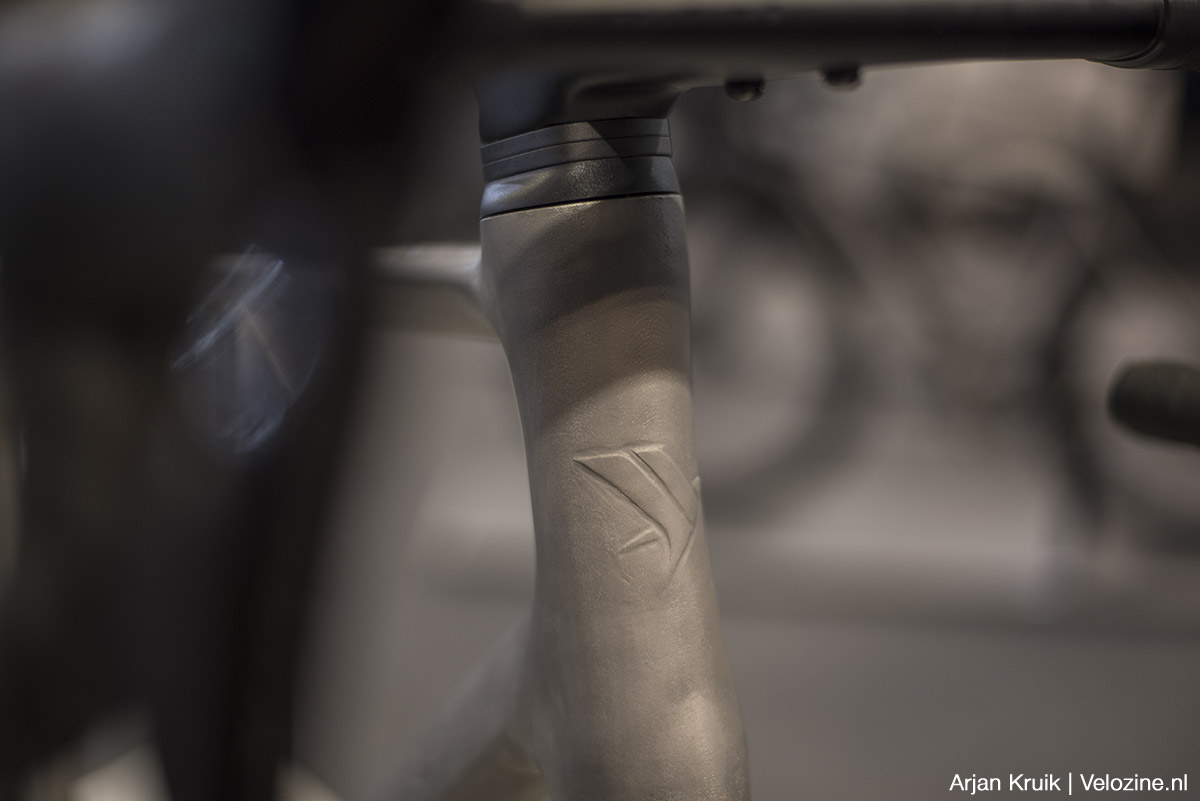Titanium is relatief sterk, licht en trillingsdempend. Ideale eigenschappen voor een voorvork. Inmiddels zijn printtechnieken dermate ver gevorderd dat het zwaarst belaste onderdeel van een fiets – de voorvork – dus óók gewoon geprint kan worden. Tom Sturdy gebruikt de techniek om zo 100% op de klant afgestemde geometrie te kunnen aanbieden.