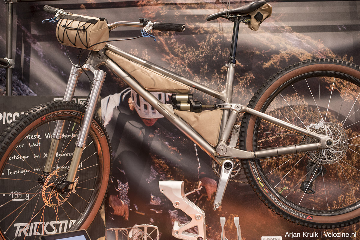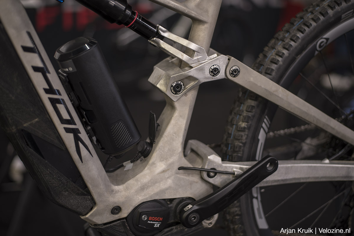Het Italiaanse Thok toonde hun Project 4. Een e-mountainbike met een aluminium frame dat eveneens is geprint. Ook zij liepen tegen de fysieke beperkingen aan van printers. We hebben de lasnaden niet gevonden, maar ook het voorframe is uit meerdere printdelen samengelast.
