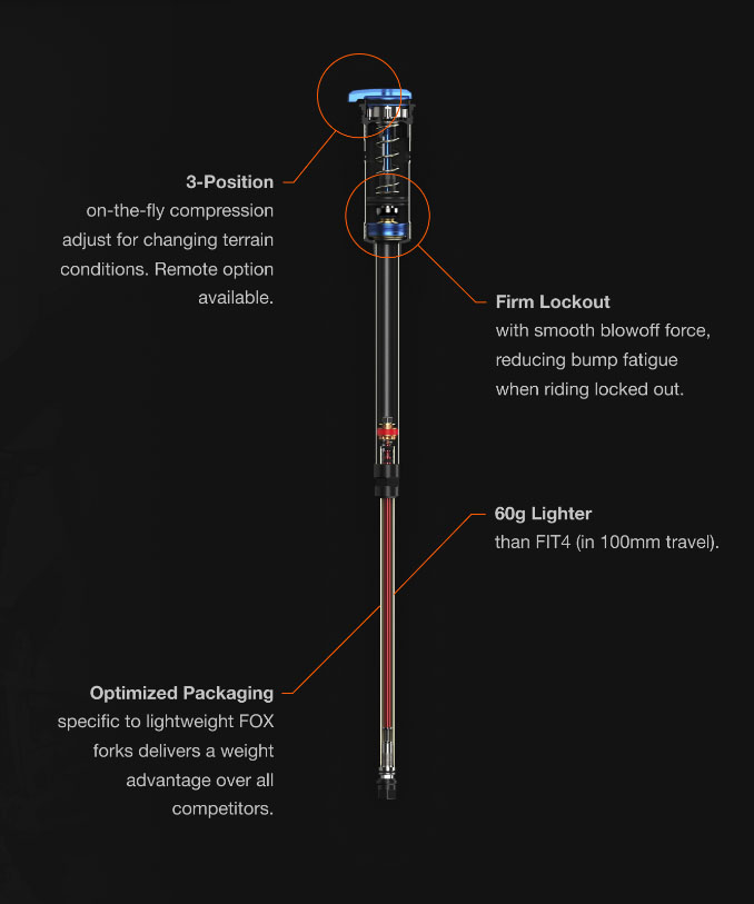 - Grip SL: Crosscountry en gravel – Voor Fox 32 Taper-Cast, 32 Step-Cast en 34 Step-Cast-chassis