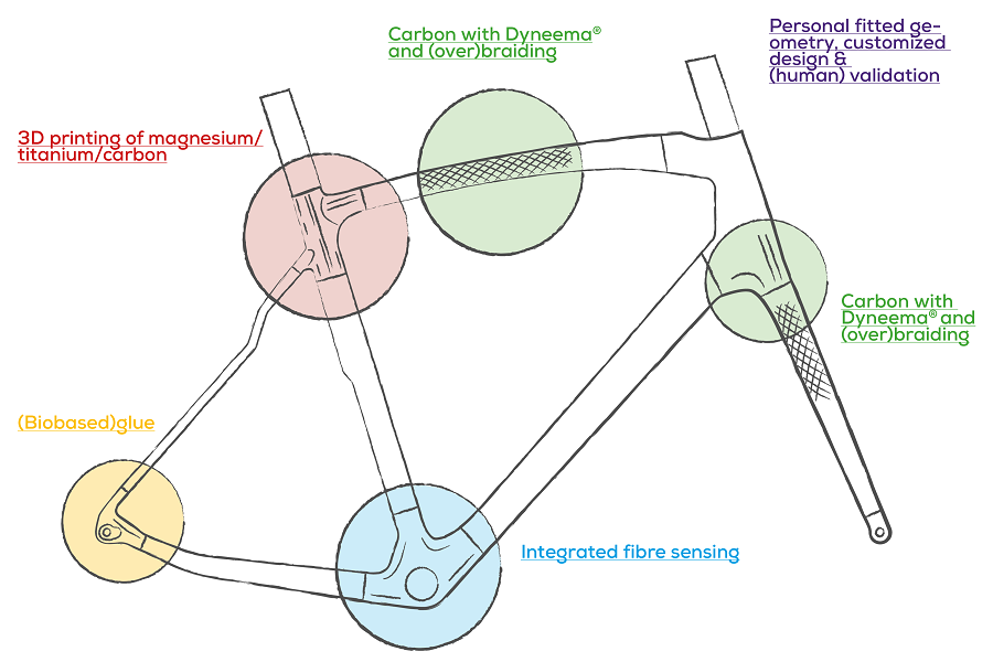 Om dit project te begrijpen, moet je je beseffen dat het hier niet alleen gaat om ‘de fiets’. Het samenwerkingsproject wil ook aantonen dat we echt wel regionaal kunnen ontwikkelen én produceren. Daarnaast zijn de innovaties in deze fiets bruikbaar in veel verschillende niet-fietstoepassingen. De fiets is – behalve een opzichzelfstaand product – dus vooral ook een showcase van technologieën die door de lokale tech-bedrijven en kennisinstituten verbonden aan de Brightlands Chemelot Campus zijn ontwikkeld. Bedrijven als Eurocarbon, CeraCarbon en Belgian Cycling Factory (eigenaar van de merken Ridley en Eddy Merckx).