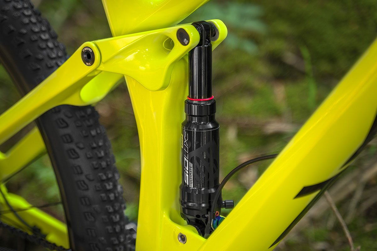 ‘dikkere crosscountry fullies’ langzaam maar zeker normaal worden. De zithoek is erg steil; dit compenseert de flinke reach (475 mm in maat L). Hierdoor valt de bovenbuislengte – en dus zittende houding – helemaal niet zo overdreven lang uit.
