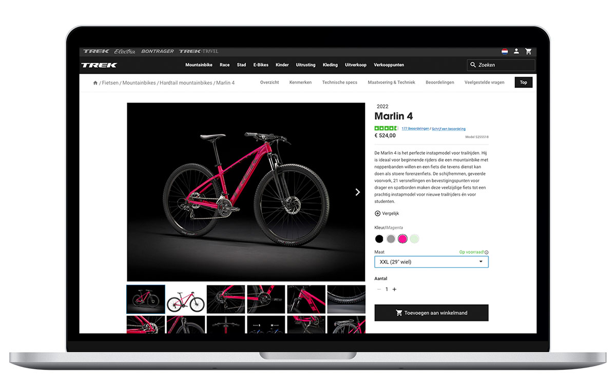 Vooralsnog is online-koopoptie voor Trek en Electra bikes en accessoires alleen beschikbaar in Nederland. De optie om online te bestellen is nog niet beschikbaar in België en Luxemburg.