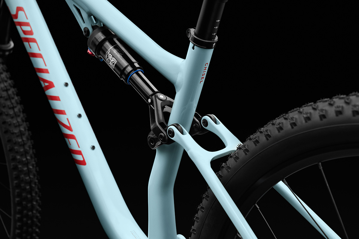 Qua veersysteem en veerweg leunt de aluminium Chisel sterk op de nog niet zo lang geleden geïntroduceerde Epic 8. Toch is de Chisel anders. Daar waar de Epic 8 120 millimeter veerweg aan de achterkant heeft, daar moet de Chisel het stellen met ‘maar’ 110 millimeter. Aan de voorkant zijn beide bikes met 120 millimeter veerweg wel gelijk bedeeld.