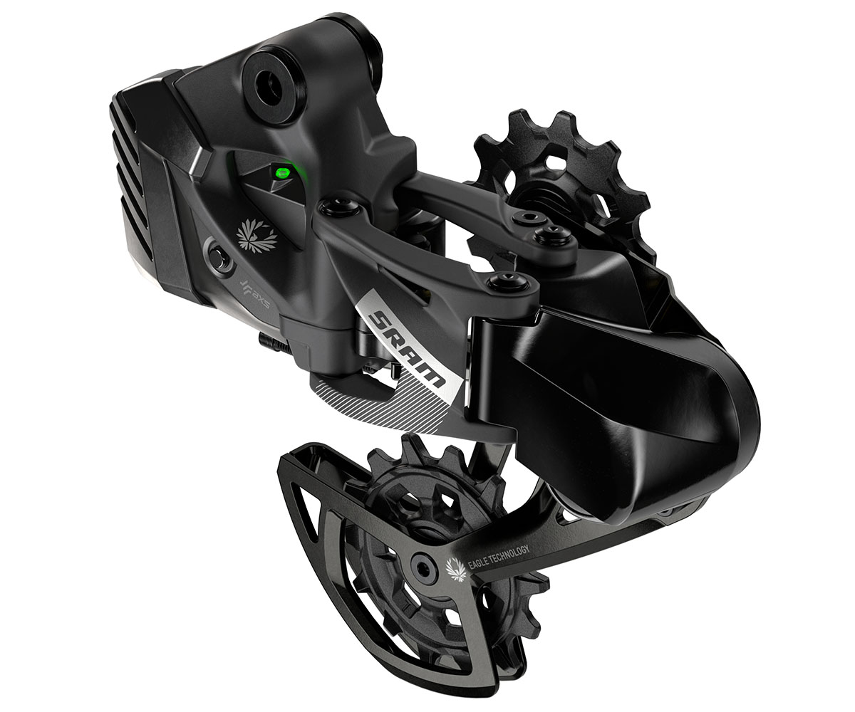 Strikt genomen kun je de X1 Eagle AXS-derailleur gerust zien als een GX Eagle AXS met een andere jasje. Deze X1 Eagle AXS-derailleur heeft dan ook de bekende overload-bescherming om de motor te beschermen bij een valpartij. Verder is deze derailleur voorzien van de mechanisch wrijvings-clutch om de ketting te stabiliseren en kun je de kooi naar voren toe vastzetten met de cage-lock om wielwissels te vergemakkelijken.