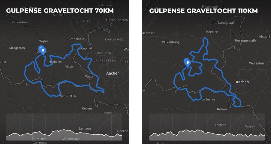 Of je nu de gravelroute van 70 of 110 kilometer kiest en of een mountainbike of gravelbike rijdt; internationaal gaat je rit sowieso zijn. De kortste route telt 980 hoogtemeters en voert je naar Belgisch Limburg (Voerstreek) om via het drielandenpunt naar het Aachener Wald te brengen. Vanuit deze bosrijke omgeving rij je over gravelpaden in noordwestelijke richting om via Nederlandse paadjes weer in Gulpen terug te komen. Bij de gravelroute van 110 kilometer heb je dezelfde aanloop naar het Aachener Wald, maar krijgt in Duitsland nog een extra lus voor de wielen. En zodra je de grens met Nederland weer bent gepasseerd, volgt er nog een extra lus richting Heerlen. Bij deze langste route heb je zo’n 1.530 hoogtemeters te overwinnen.