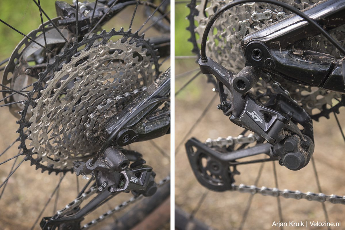 De prima veerelementen van Fox noemde ik hierboven al. Maar voor 3.499 euro levert Conway daarbovenop een nagenoeg complete Shimano XT-groep. Alleen de cassette en ketting zijn afkomstig uit de iets goedkopere SLX-groep. Maar dat levert functioneel gezien geen enkel nadeel op, terwijl Conway in tegenstelling tot sommige andere merken juist niet bezuinigd op de punten die er écht toe doen. Zo zit op het stuur een XT-shifter en zijn op de naven XT Ice Tech Freeza-remschijven gestoken. Waarom dat van belang is? Met de XT-shifter hebt je de mogelijkheid vier verzetten in één keer op te schakelen en twee in één keer omlaag. En de Freeza-remschijven zijn ondanks hun lage gewicht erg goed in het afvoeren van overtollige warmte.