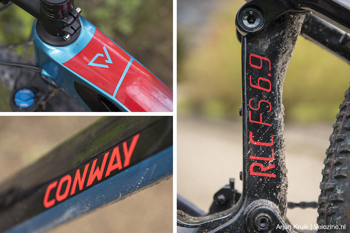Ondanks dat alle bikes dezelfde modelnaam hebben en hetzelfde frame delen, hebben ze aan de voorkant niet allemaal dezelfde hoeveelheid veerweg. De RLC FS 9.9, 7.9 en 4.9 hebben een voorvork met 110 millimeter veerweg, de geteste 6.9 heeft een centimeter meer. Aan de achterkant zijn alle modellen qua veerweg gelijk. Conway geeft een veerweg van 100 millimeter op, in de praktijk is het net iets meer.