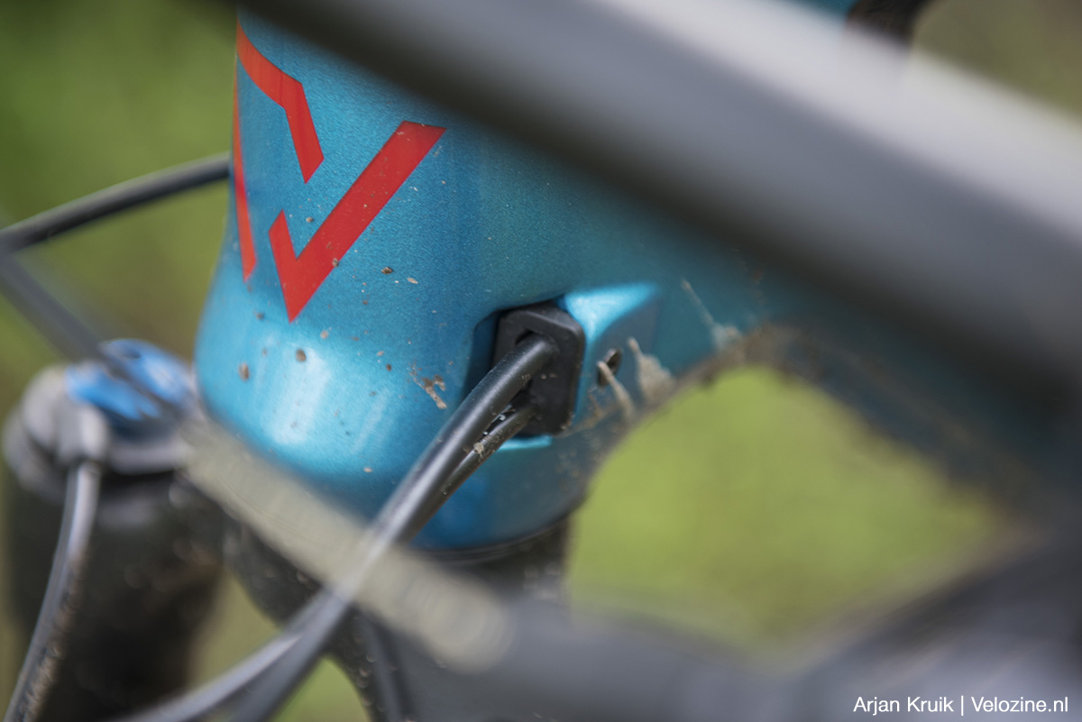 Naast veersysteem spelen uiteraard de veerelementen eveneens een rol. Voorin hangt een Fox 34 Step-Cast Performance, aan de achterkant vangt een Fox Float de klappen op. Naast luchtdruk en de demping van de uitgaande slag kun je bij de vork en de demper met behulp van een hendel onder het stuur kiezen tussen de standen ‘open’ en ‘gesloten’. Er is dus géén tussenliggende klimstand. Vind ik dat op sommige fullies een gemis, bij deze Conway maal ik er niet om. De achtervering is in de open stand namelijk nauwelijks gevoelig voor deinen. Inzakken van de achtervering in de steilste secties? Ook nauwelijks. Om die reden gebruik ik de blokkeerfunctie eigenlijk alleen maar op verbindingssecties over asfalt. En niet eens omdat het echt nodig is, maar omdat het kan.