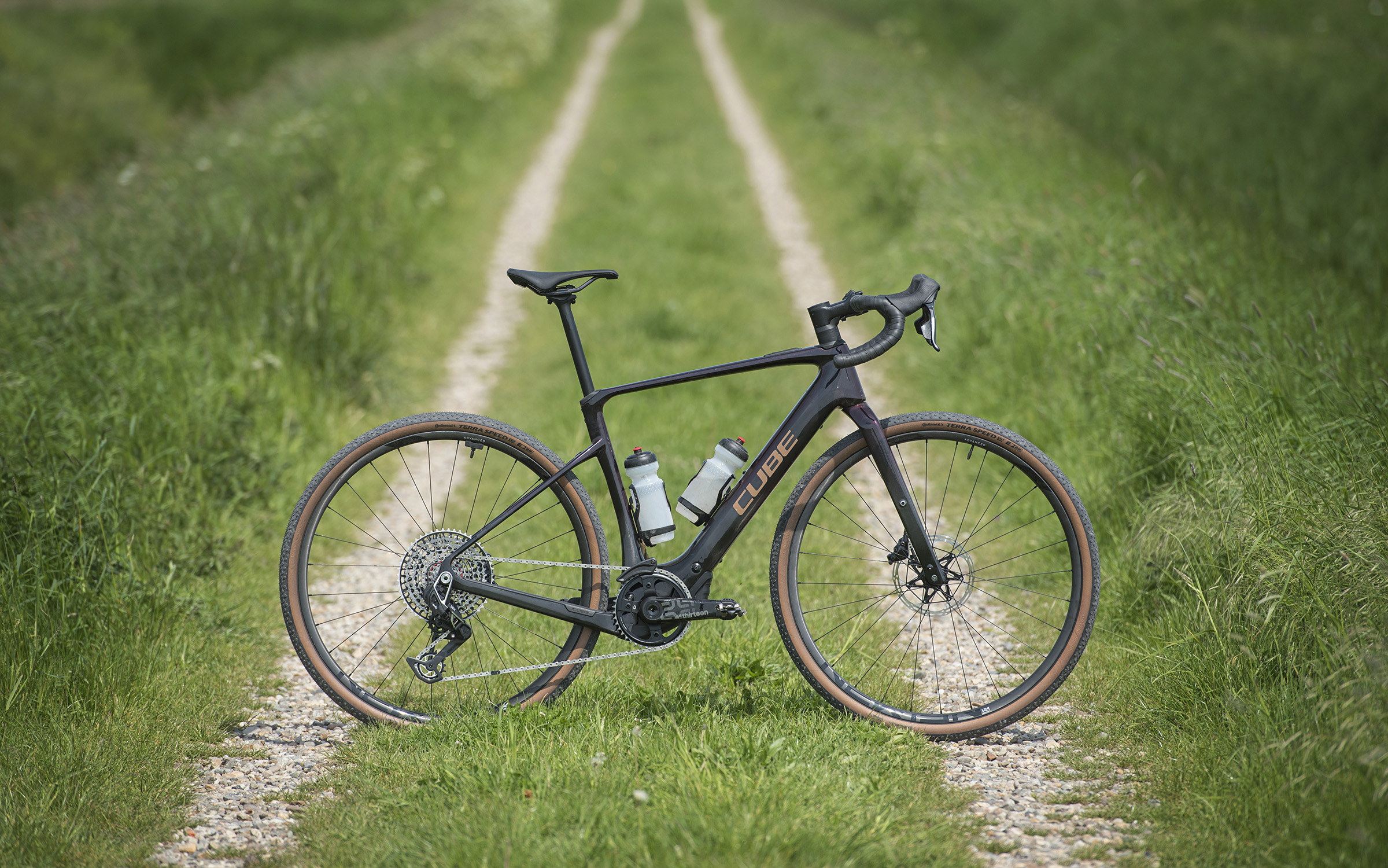 Maar ik begrijp ook wat de kopers beweegt. Vroeger of later krijgt iedereen te maken met fysieke beperkingen. En waar dat voorheen een einde maakte aan de fietscarrière, daar is er tegenwoordig de hulp van een elektromotortje. Ik zie het in mijn eigen mountainbikeploegje, de zestigplussers die het tempo niet meer kunnen bijbenen en na de aanschaf van een e-mountainbike helemaal blij zijn dat ze weer kunnen aanhaken. Dat Cube begin dit jaar een elektrische gravelbike lanceerde, is dus niet zo gek als het lijkt. Er zijn immers ook gravelfietsers die een beetje traphulp kunnen gebruiken. En omdat Cube een zeer nauwe samenwerking met Bosch heeft – in alle e-bikes van Cube hangt een Bosch-motor – is dat de nieuwe lichtgewicht SX-motor geworden. Nuroad Hybrid is de naam van deze serie e-gravelbikes. Ik heb gereden met het topmodel, de Cube Nuroad Hybrid C:62 SLT. En dat was bepaald geen straf…