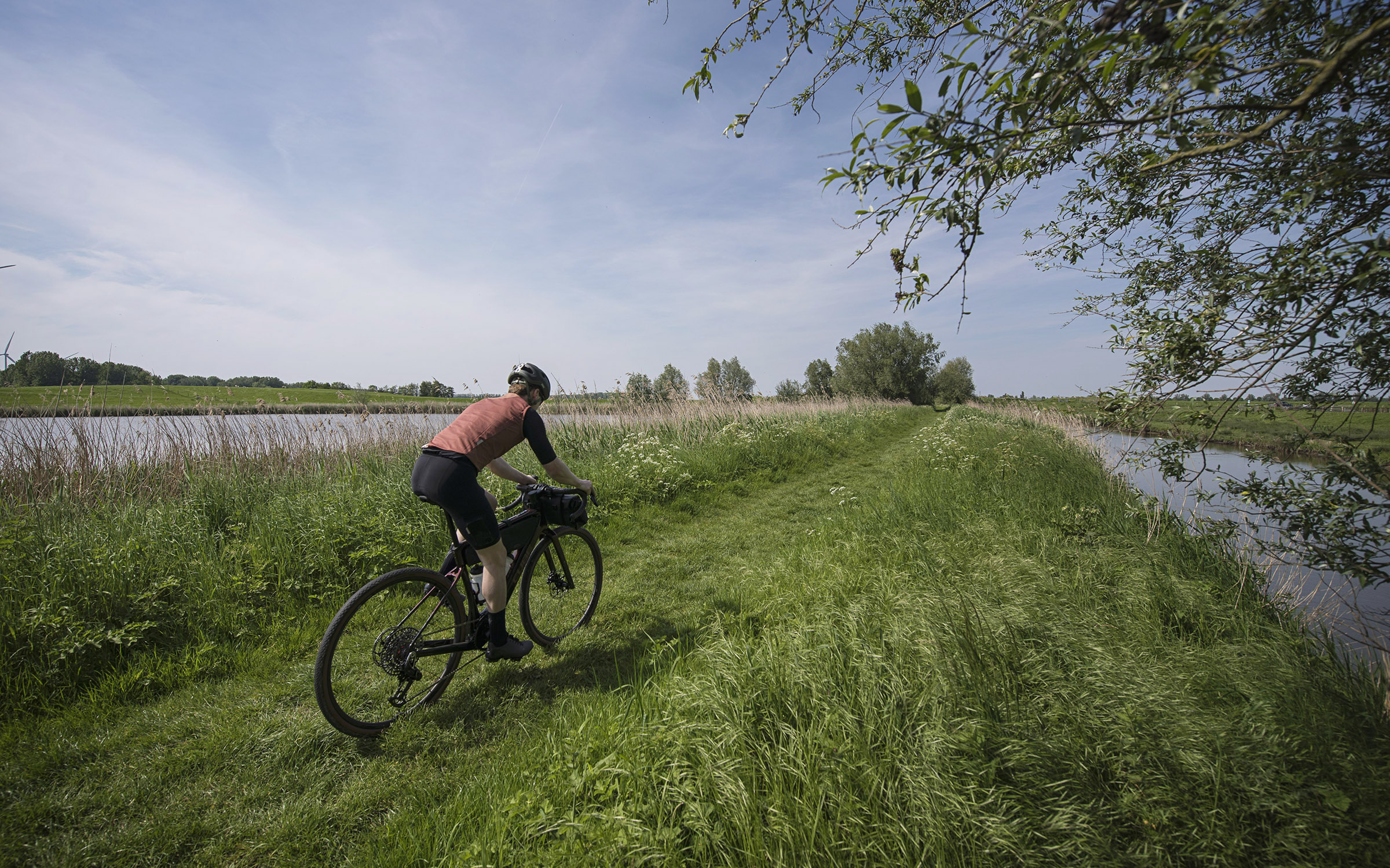 Ook mul zand blijkt een sterk punt van de Nuroad Hybrid. Terwijl je jezelf met een reguliere gravelfiets op zandstroken helemaal de vernieling in kunt trappen, ploegt de Cube er met behulp van de SX-motor probleemloos doorheen. Natuurlijk, m’n hartslag gaat omhoog, ondanks de niet geringe trapondersteuning. Maar ik kom niet in het rood. Hier blijkt nog een andere functie van de korte cranks dan alleen maar het creëren van meer bodemvrijheid: ze zorgen er ook voor dat je makkelijker de hoge trapfrequentie haalt die de SX-motor van je voor het vrijgeven van de maximale ondersteuning van je vraagt.