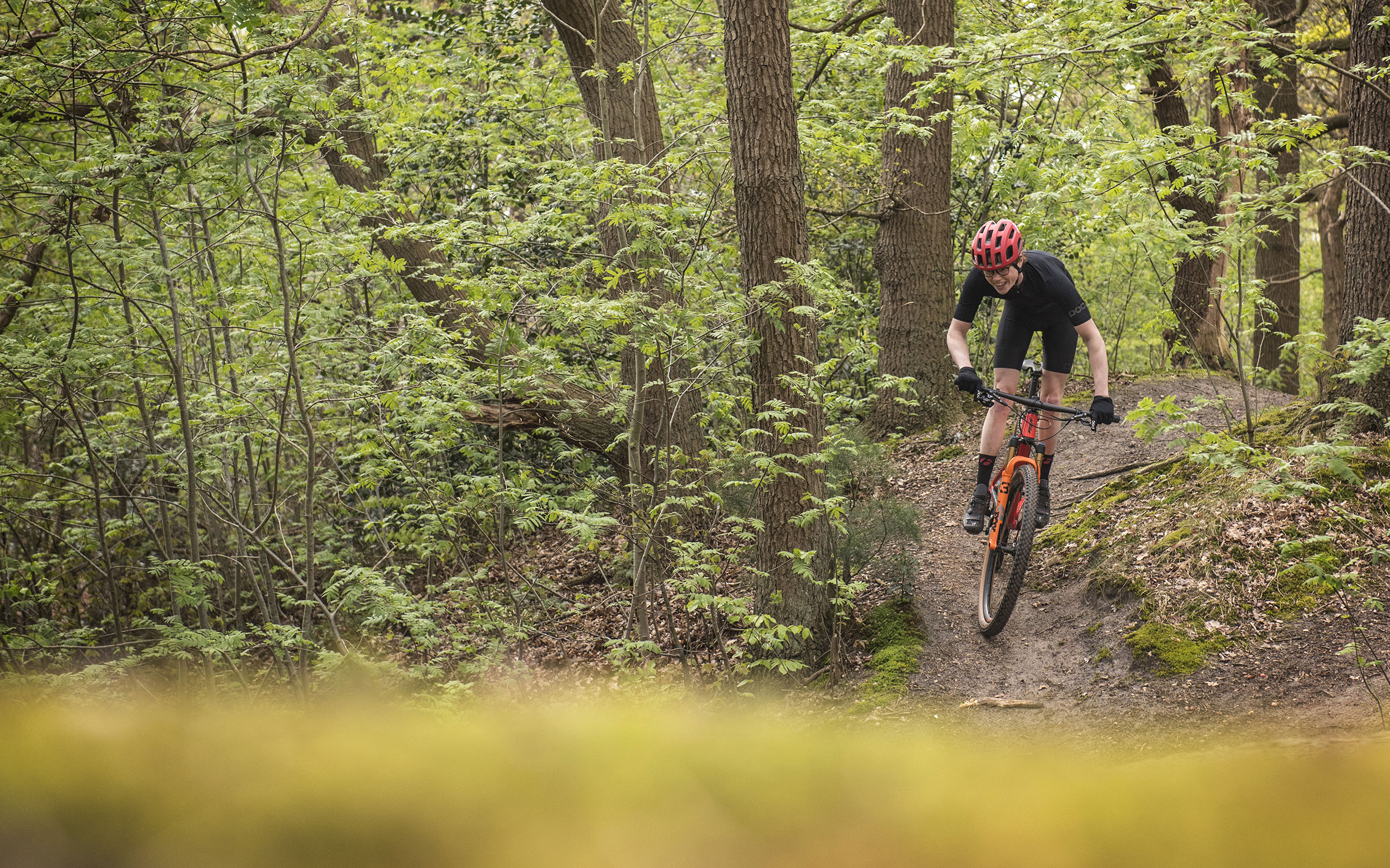 Laat ik al die ronkende woorden en superlatieven die ik net zo enthousiast met m’n toetsenbord deze pagina ingeroffeld heb even van wat achtergrond voorzien. Ik heb op álle routes die ik op de KTM Scarp Exonic gereden heb mijn eigen beste tijden verbeterd. En niet eens door me het snot voor ogen te trappen. Natuurlijk, ik heb lekker doorgereden. Maar tot het gaatje ben ik nergens gegaan. En tóch ging ik sneller. Al vanaf de eerste meter daagt deze bike je uit, gefaciliteerd door het lage gewicht, de functionele geometrie en de effectieve zitpositie. Sneller, sneller, sneller!