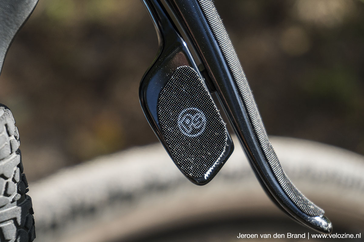 Voor de vorm heb ik ook de kleine Lever Grippies-plakker op de schakelhendels geplakt. Daar heb ik niet structureel last van het gladde oppervlak, omdat ik veelal boven op de grepen rijdt en vanuit die schakelpositie de vinger niet snel wegglijdt. Ik kan me echter wel een moment herinneren waarbij ik tijdens een erg natte rit met de handen onderin de beugel op een flinke stuiter afdaling wél van de schakelhendel schoot. Goed; dat is wel heel specifiek en in die zin misschien een freak accident, of op z’n best een anekdotisch argument. Aan de andere kant; het feit dat zowel rem- als schakelgreep dezelfde oppervlaktestructuur hebben vind ik ook wel wat waard.