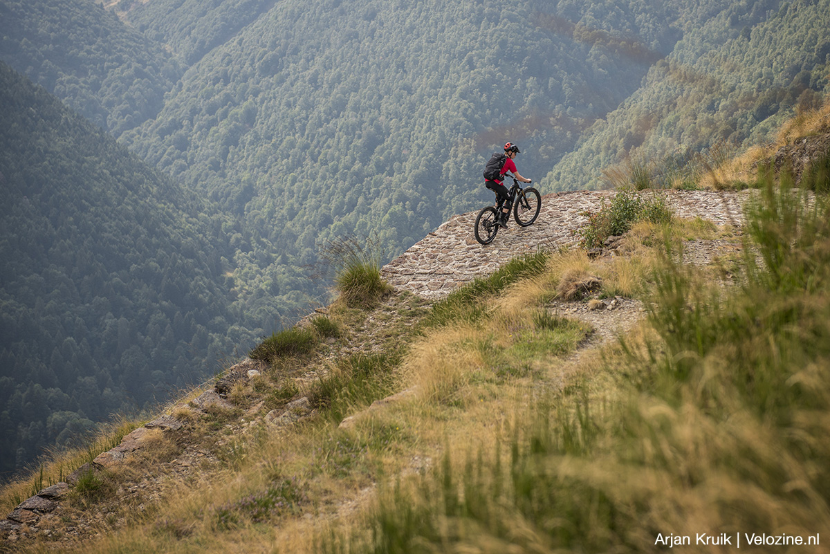 Rijden dus. Ik heb de Stevens E-Inception AM afgelopen zomer meegenomen naar het Italiaanse Comomeer. De bergen rond dat meer liggen bezaaid met eeuwenoude mulattierri, muilezelpaden, waarmee vroeger de dorpen in de bergen waren verbonden met het dal. En dan liggen er ook nog oude strada militare, militaire wegen, die in de Eerste Wereldoorlog zijn aangelegd om de grenzen te beveiligen. Volop mogelijkheden dus voor avontuurlijke mountainbikers, zeker als je nagaat dat het meer op 200 meter ligt en sommige militaire wegen in het achterland ruimschoots boven de 2.200 meter komen. Lees: twee verticale kilometers klimmen! Dat is niet alleen een uitdaging voor gewone mountainbikers, maar zeker ook voor e-bikers.