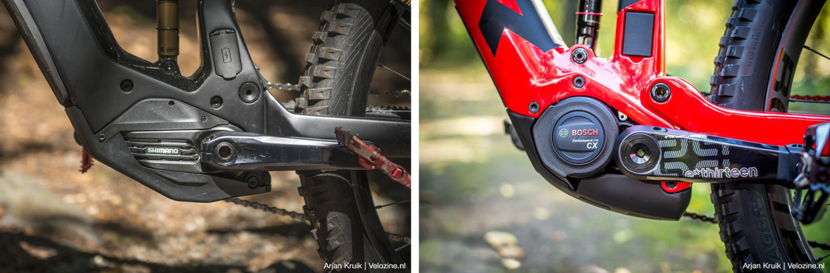 Fabrikanten kunnen overigens ook voor het ene of andere motormerk kiezen vanwege afmetingen van de motor, het gewicht en de beschikbaarheid van accu’s. De EP8 e-bike-motor is relatief licht; 3,8 kg weegt-ie. Ter vergelijking: een actuele Bosch CX-motor doet 4,35 kg. En omdat de Shimano-motor bovendien relatief compact is, worden constructeurs in staat gesteld e-mountainbikes te maken met een kortere liggende achtervork dan bijvoorbeeld bij bikes met motor van Bosch of Yamaha mogelijk is. Alhoewel, dat moet gezegd, Stevens dát aspect bij z’n E-Inception AM niet uitbuit; zowel de uitvoering met Shimano- als die met Bosch-motor hebben een relatief lange liggende achtervork van 45 cm.