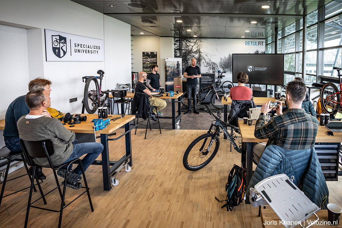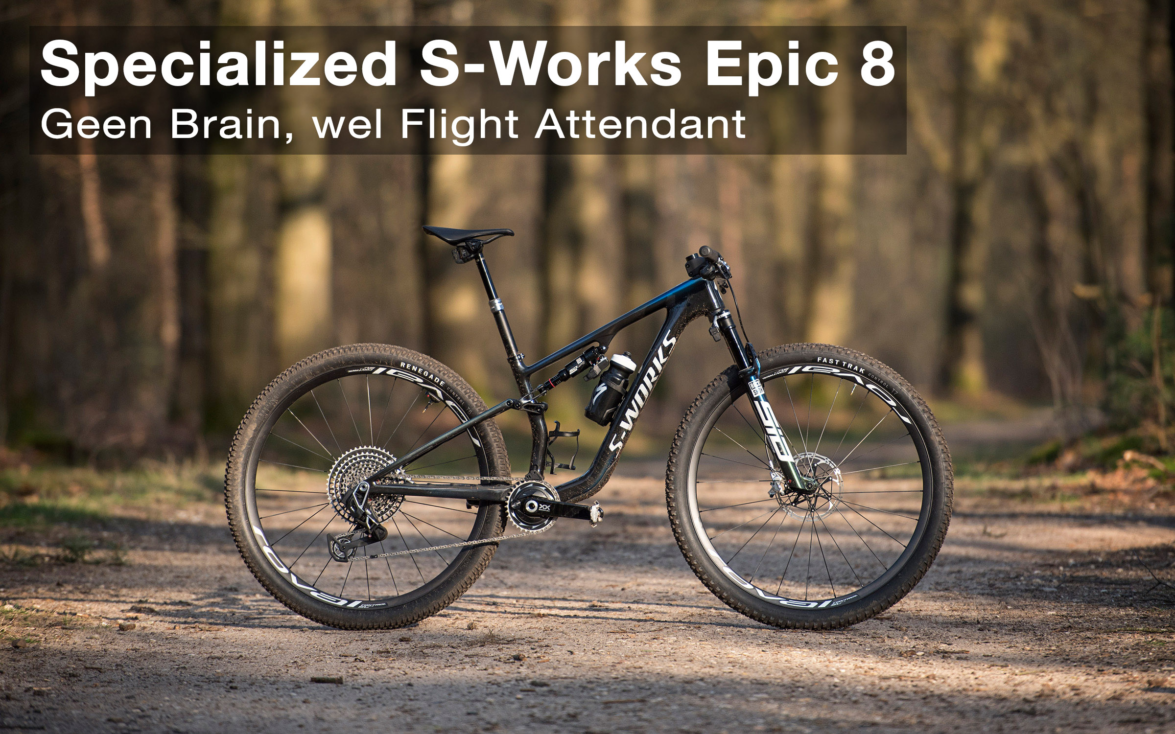 Maar ik maak me voor niks zorgen. Want als ik na de uitleg over deze nieuwe crosscountry-bike in de gelegenheid ben er over de mountainbikeroute van Schaarsbergen een rondje op te rijden, moet ik mijn eerste indruk al snel grondig bijstellen. Alhoewel de S-Works Epic 8 eruit ziet als een minitrailbike, rolt-ie als als een razende Roeland over de gladgewalste singletracks. Ligt dat aan de nieuwe S-Works Epic 8 zelf? Of komen de prestaties vooral op het conto van Flight Attendant? Ik kom er hieronder op terug. Eerst loop ik de details van deze nieuwe Californische fully even met je door.