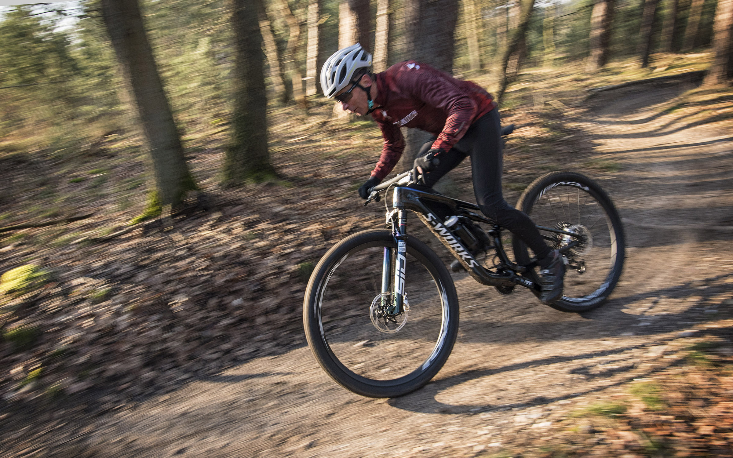 Na afloop van de perspresentatie op het hoofdkantoor van Specialized in Arnhem had ik de gelegenheid om met de S-Works Epic 8 een rondje te rijden over het parkoers van Schaarsbergen. Die lus is zo’n 25 kilometer lang, met iets van 300 hoogtemeters. Het is een typische newskool route met bochtige, gladgewalste singletracks en een grote hoeveelheid korte maar gemene klimmetjes. Superleuk om te rijden en bovendien voor een groot deel van de Nederlandse mountainbikers een relevant soort route. Maar het is niét een route waarop je alle aspecten van een bike als de S-Works Epic aan de tand kunt voelen. Je moet mijn verslag hieronder daarom zeker niet zien als een volwaardige test.