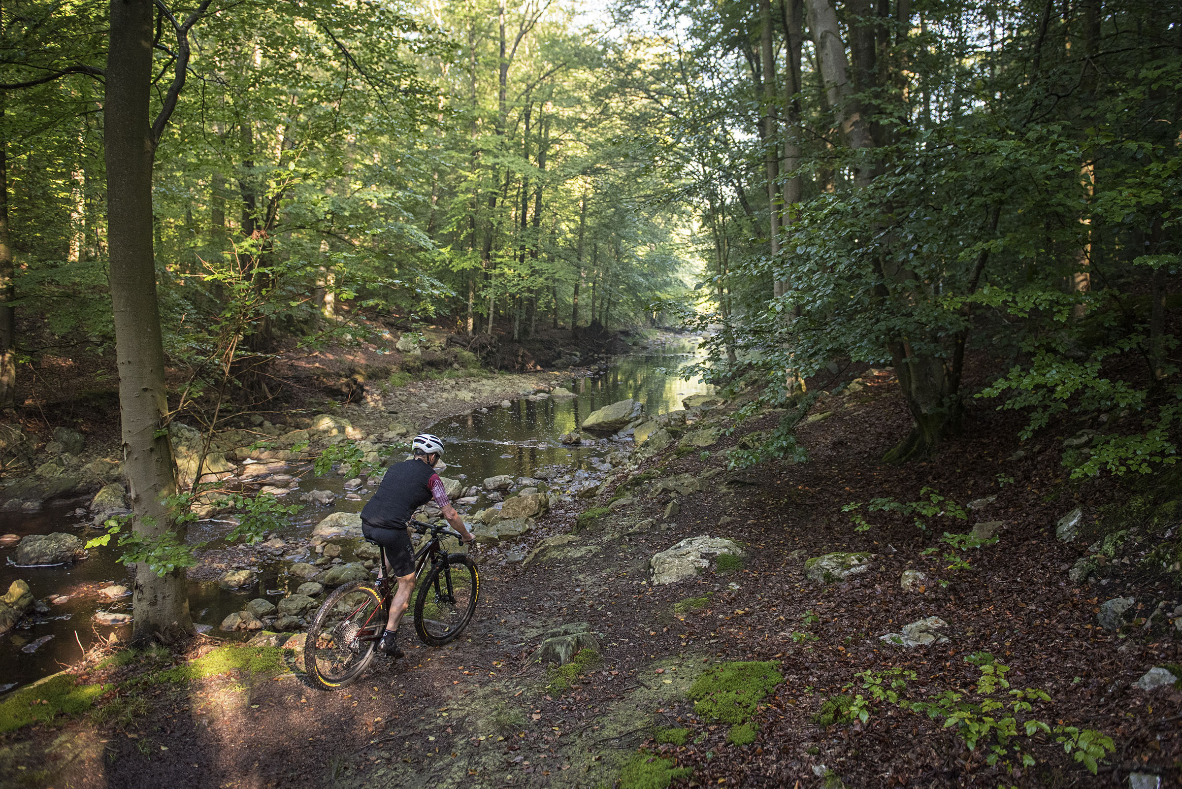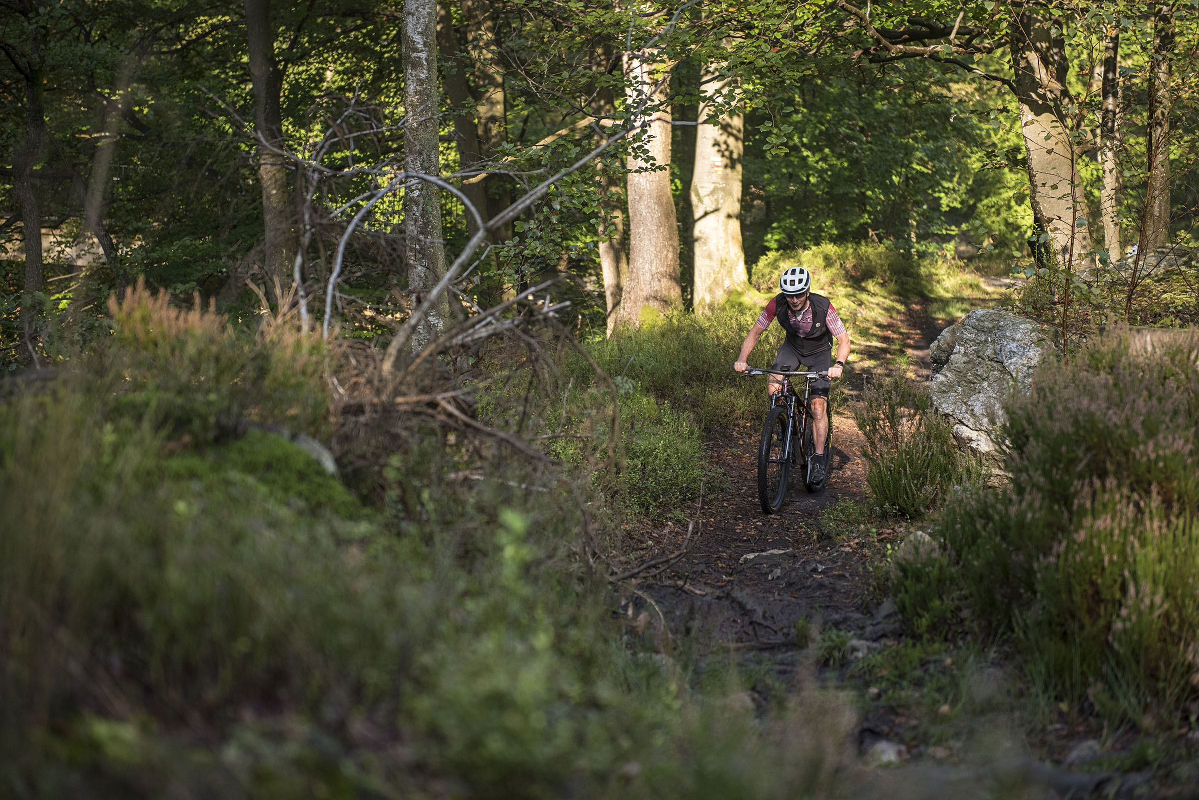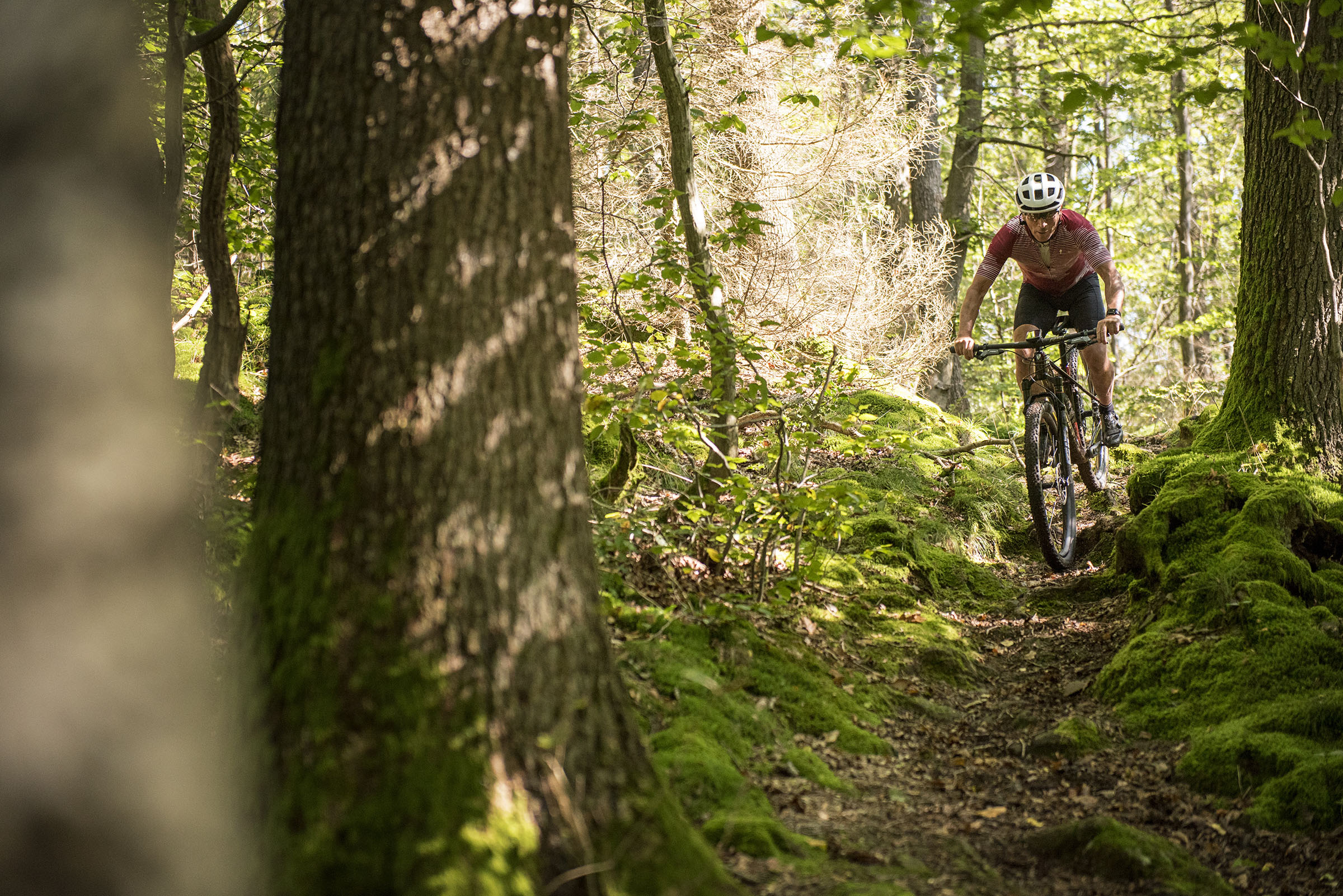 Ik heb de Trek Procaliber voornamelijk gereden op de Brabantse Wal en omstreken, met een mix van rechte oldskool-routes en slingerende singletracks. Wie bang is dat de derde generatie Procaliber vanwege z’n gemoderniseerde geometrie minder geschikt is geworden voor dit soort typisch Nederlandse omstandigheden, kan opgelucht ademhalen. Ouderwets rechte secties met haakse bochten zijn geen probleem. Je hoeft aan het eind van zo’n bocht maar te denken aan accelereren en de lichtvoetige Trek schiet al vooruit. En sturen doet-ie op de vierkante centimeter.