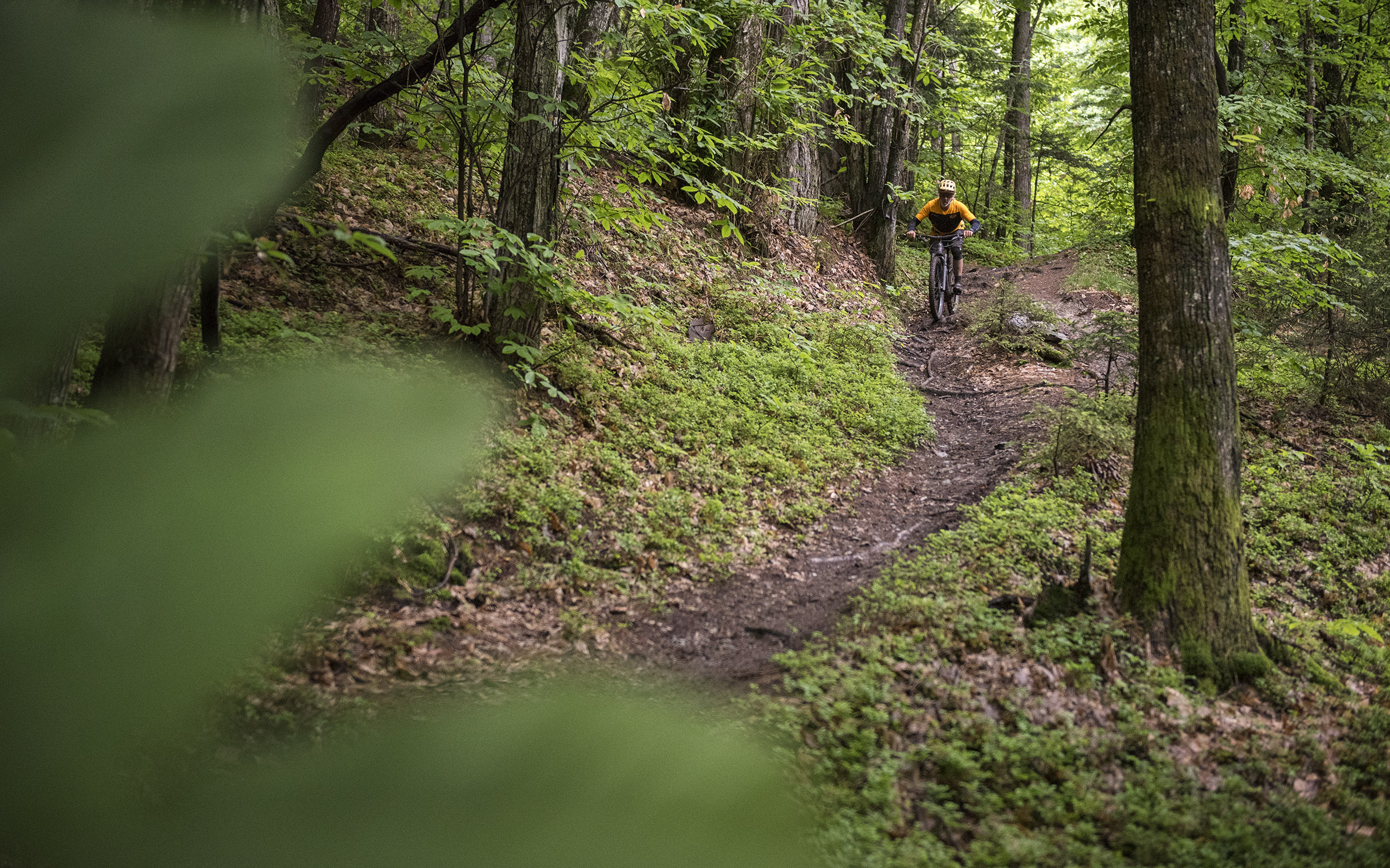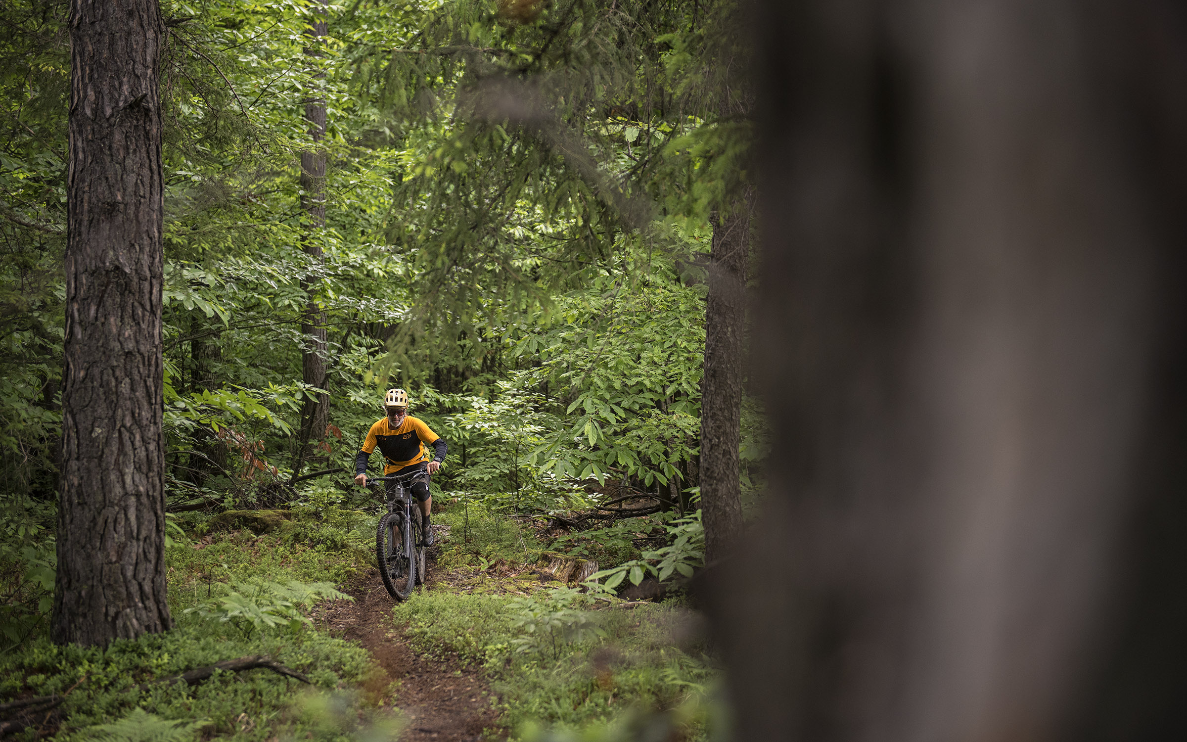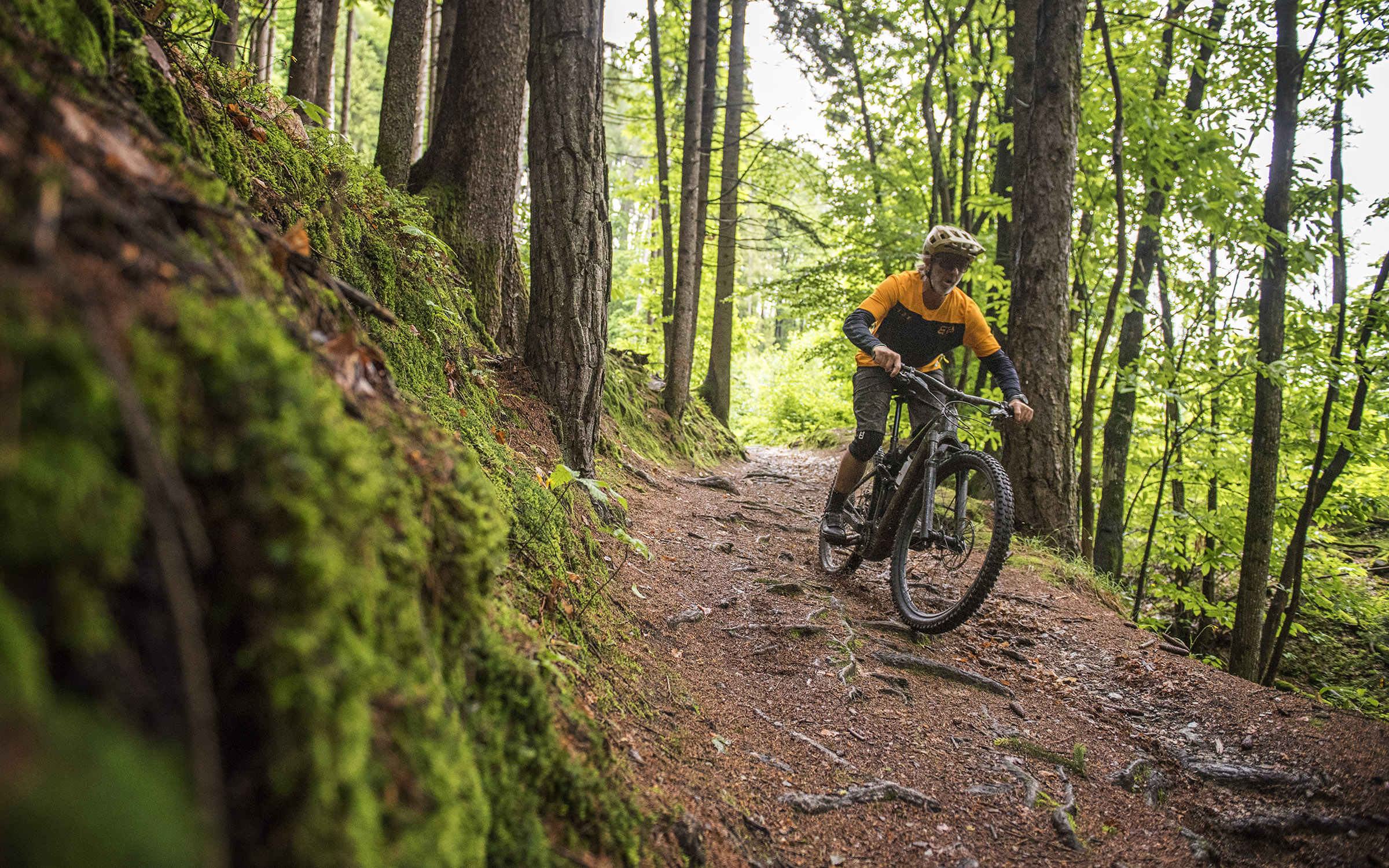 Tour+ ontpopt zich tot mijn favoriet. In deze modus geeft de ondersteuning je het gevoel dat je hele goede benen hebt. De eMTB-stand is vaak teveel van het goede; hier merk je dat het vooral de motor is die de prestatie levert en zéker niet je benen. Al die e-power die in de eMTB-stand op het achterwiel overgebracht wordt, heeft bovendien als nadeel dat het in steile, technische secties lastig is om het voorwiel aan de grond te houden. En dan zijn er nog keien die je om de oren vliegen omdat de achterband op zoek is naar tractie. Laat ik het maar voorzichtig zo zeggen: van al dat geweld wordt zo’n pad niet bepaald beter. En dan heb ik de Turbo-stand nog niet eens gebruikt…