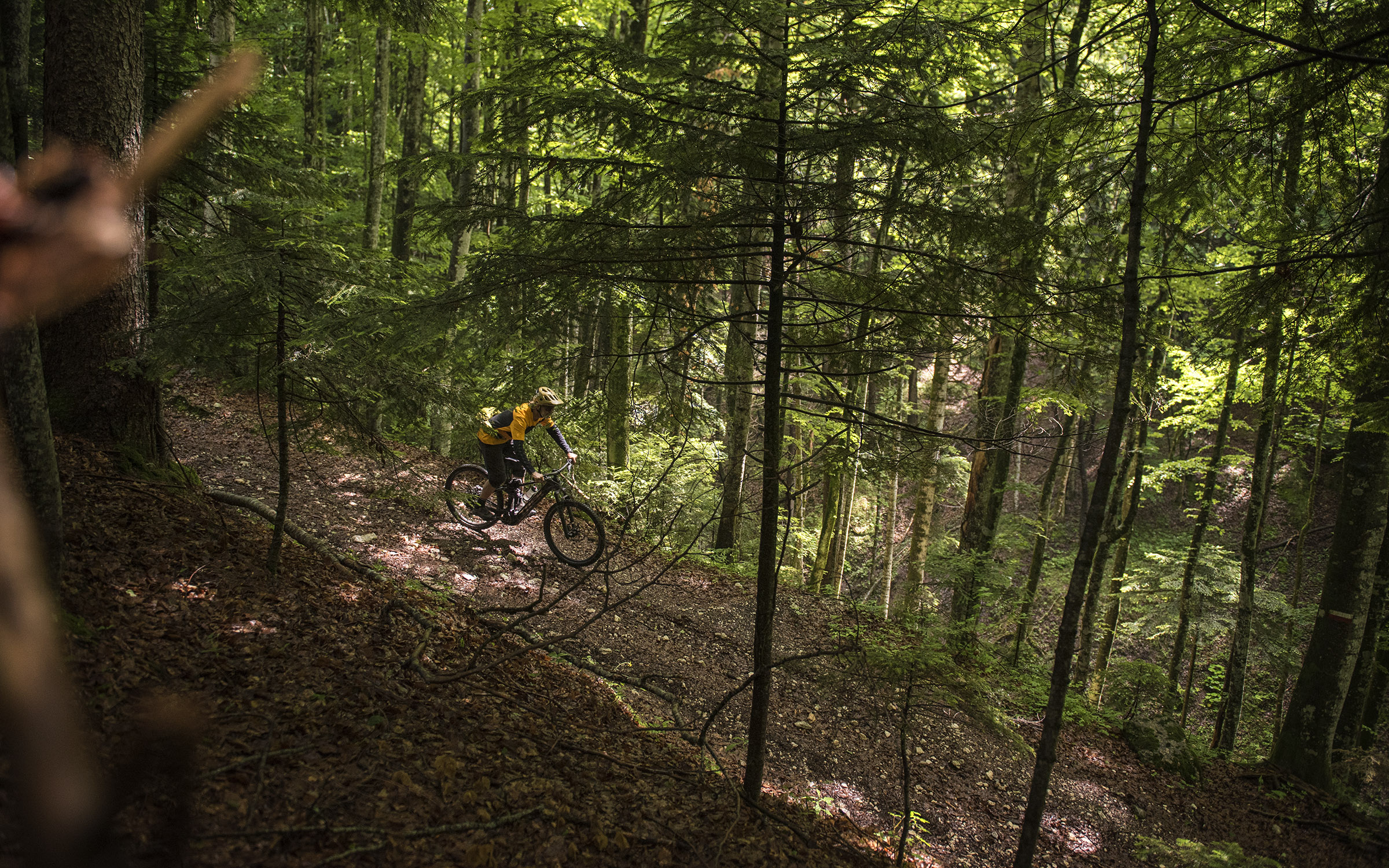 Hoe meer ik met e-mountainbikes in de bergen onderweg ben, hoe meer ik mijn beeld moet bijstellen van wat mountainbiken nu eigenlijk is. Klim je op een spierfiets doorgaans omhoog over relatief makkelijk toegankelijke asfalt- en grindwegen, om daarna te kunnen genieten van spannende afdalingen, met een e-mountainbike kun je óók de beklimmingen spannend maken. Dat wil zeggen dat je de trails die je normaal gesproken alleen maar zou afdalen nu óók in omgekeerde richting kunt bedwingen.