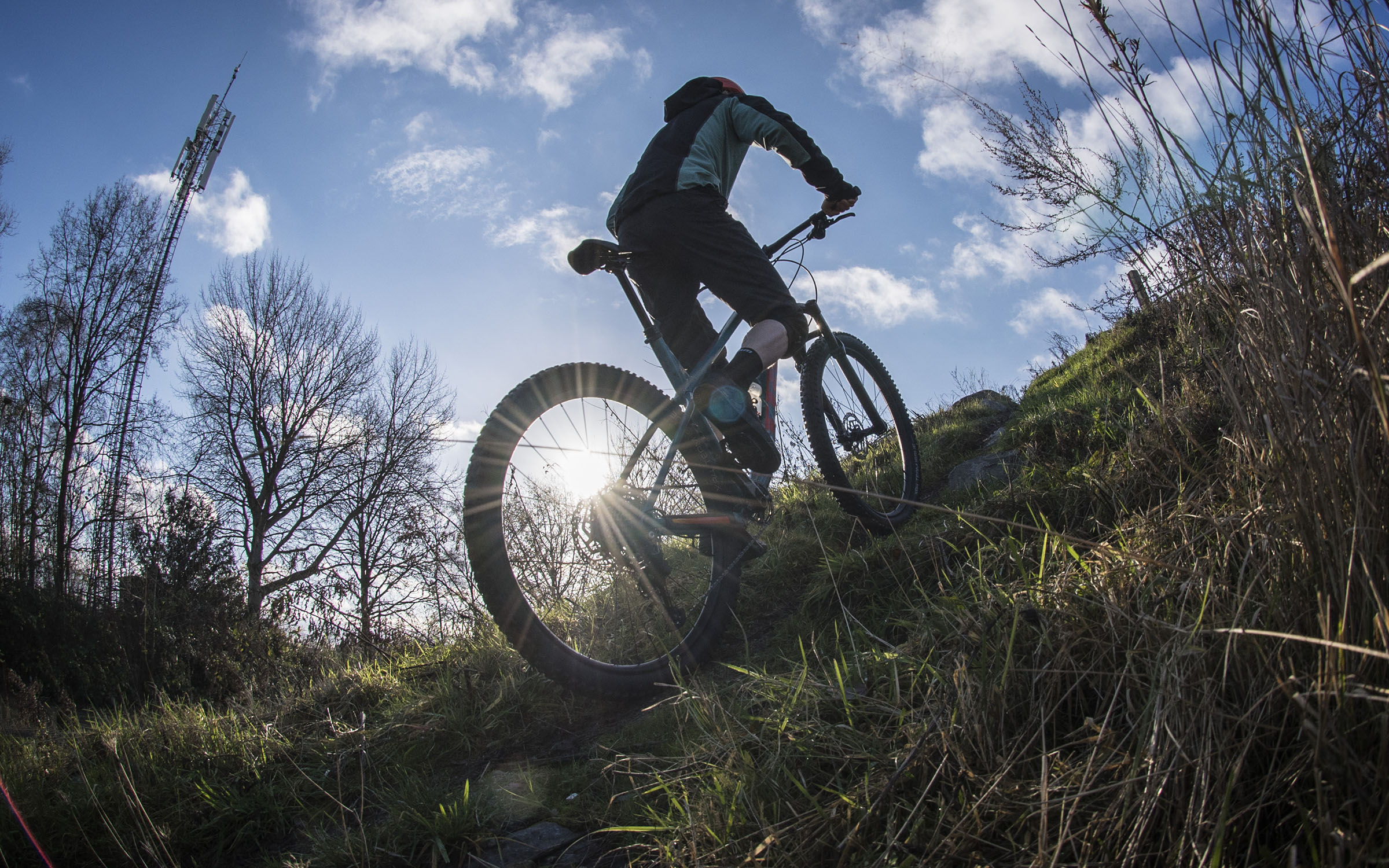 De Roscoe heeft een fijne zit. Sportief, maar ondanks de lengte van de fiets niet te sportief. Dat heeft vooral te maken met de relatief steile zitbuishoek en de korte stuurpen, die het zadel en het stuur dichterbij elkaar brengen. Klimmen doet de Roscoe als een malle, vooral als je dat staand in de pedalen doet. De grote noppenbanden en de korte achterbrug zorgen voor een ongekende hoeveelheid grip, zeker als je die banden niet te hard oppompt. Maar ook zittend op het zadel is de Roscoe een goede klimmer. Okay, vanwege de hoge massa en de bepaald niet geringe rolweerstand van de banden zal je op Strava geen potjes breken. Maar wie geen haast heeft, komt dankzij de efficiënte zitpositie altijd boven. En dat veel comfortabeler dan je van een hardtail verwacht; ook hier spelen de dikke banden hun troefkaart.