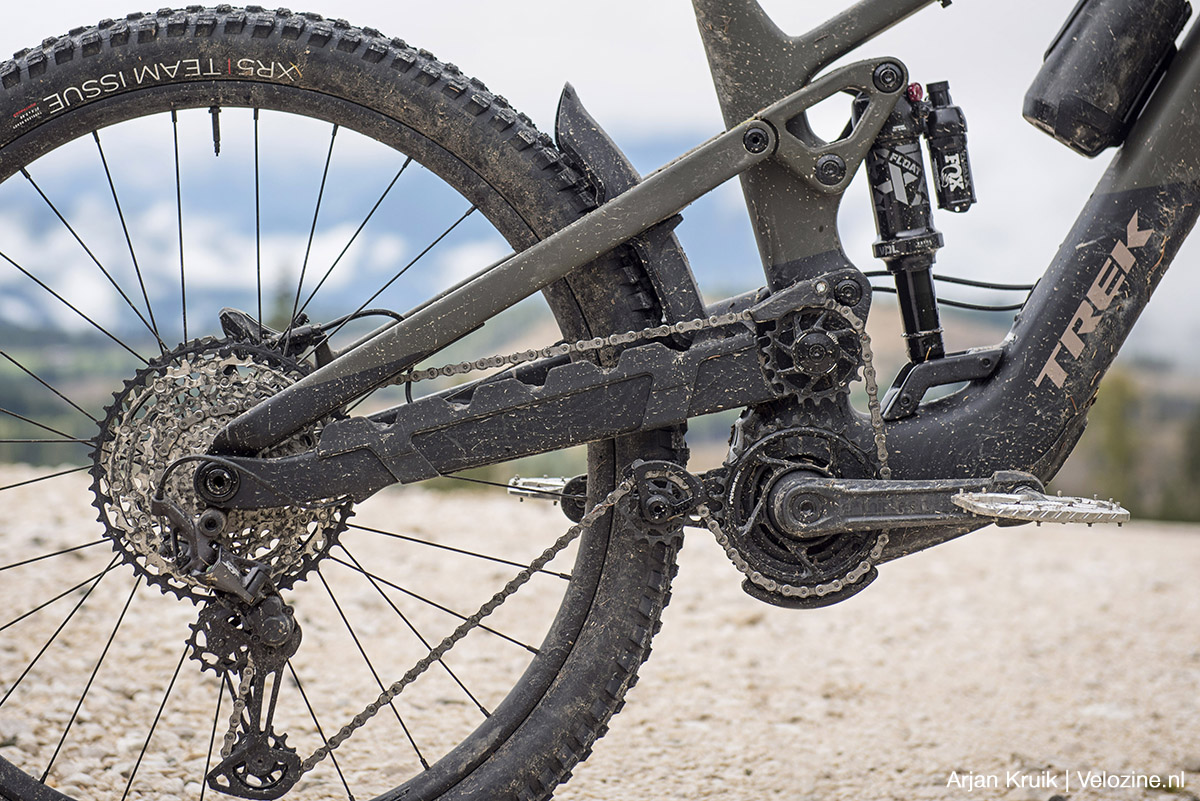 De goedkope Fox Rhythm aan de voorkant kan de achterkant helaas niet altijd even goed bijbenen. De relatief eenvoudige Grip-demper laat zich lastig afstellen; óf de demping is te gering waardoor de vork te weinig tegendruk biedt óf de demping is te sterk waardoor de gevoeligheid verloren gaat. Gelukkig heeft Trek als het gaat om geometrie aan de juiste knoppen gedraaid. Stabiliteit en koersvastheid gaan namelijk op wonderbaarlijke wijze samen met wendbaarheid en een speels karakter. Daardoor maak je niet alleen korte metten met ruige rotspaden, maar valt er ook op relatief gladde flowtrails veel lol te beleven.