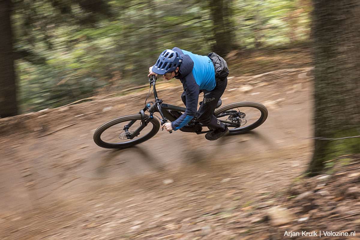 Klimmen doet de Slash+ dus veel beter dan ik op basis van de kale cijfers had verwacht. Een fijne bijkomstigheid, maar ook niet meer dan dat, want uiteindelijk koop je een bike als de Slash+ omdat je zoveel mogelijk wilt afdalen. En dalen, dat kan je wel aan ‘m overlaten. De achtervering reageert niet alleen gevoelig op kleine oneffenheden, maar absorbeert ook enthousiast de grofste rotsen en dikste wortels, zónder daarbij door z’n gehele veerweg te jassen. Door dat gevoel van eindeloze veerweg, gecombineerd met een precies stuurgedrag en een hoge mate van stabiliteit, rijd je zelfs de ruigste paden met twee vingers in je neus. Oprecht, nog nooit eerder reed ik met een bike waarop afdalen gevoelsmatig zo makkelijk is.
