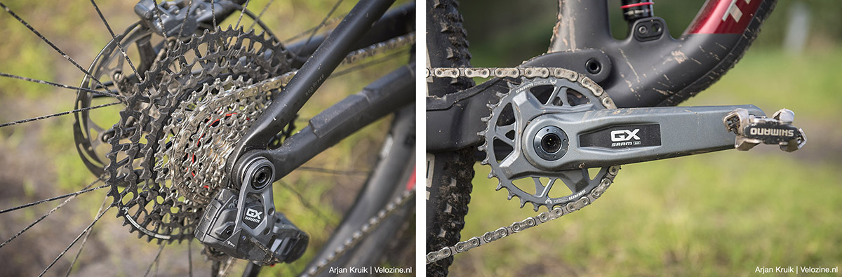 Omdat Trek bij de afmontage van de Top Fuel veel keuze biedt – niet alleen qua prijzen, maar ook tussen Shimano en Sram – hou ik het hier maar kort. De Sram GX Eagle AXS Transmission op de testfiets werkt feilloos. Tenzij de batterijtjes leeg zijn. Oké, beetje flauw. Maar voor een bike waarmee je lange tochten door de bergen kan maken zou een elektrische derailleursysteem niet mijn eerste keus zijn. Maar goed, misschien zie jij dat anders en dan moet je gewoon voor deze groep gaan.