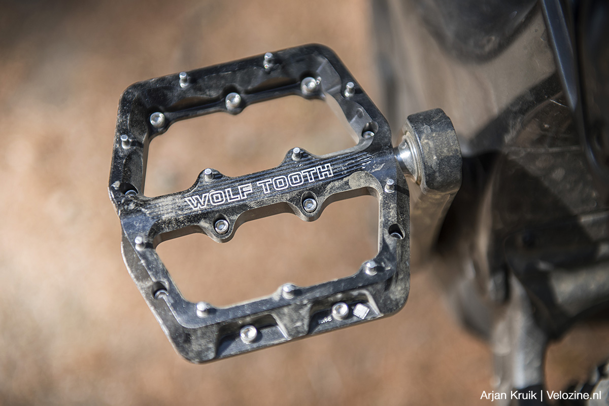 Los van hoe ze bevallen zijn de Wolf Tooth Waveforms mooi spul. Fraai gefreesde aluminium body, roestvaststalen as, drie industrielagers, goed afgedicht glijlager, roestvaststalen pinnetjes. Die laatste hebben de Alpentrip trouwens niet allemaal overleefd. Een harde confrontatie met een rots die niet aan de kant ging heeft een flink aantal pinnetjes de das omgedaan. Gelukkig krijg je een zakje met zes reservepinnetjes meegeleverd. En zelfs als ze volledig afgebroken zijn, is het vervangen zo gebeurd. Wel ben ik daardoor bijna helemaal door de voorraad reservepinnetjes heen. Op zich geen probleem, een nieuw zakje kost maar 4,95 euro.