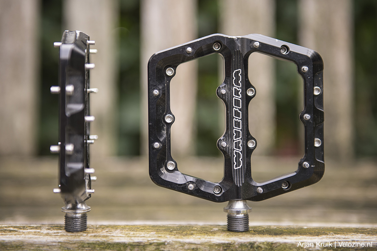 Wat dat betreft speelt het aantal pinnen en zeker ook de dikte en lengte van die pinnen een minstens zo belangrijke rol. Waarbij méér pinnen niet altijd beter is. Wolf Tooth gaat er prat op dat hun Waveforms elf pinnen per kant hebben. En ja, dat levert een flink hoeveelheid grip op. Echter, het setje Kona Wah Wah-pedalen dat ik parallel aan de Waveforms gebruik heeft maar acht pinnen per kant. En die pedalen bieden zéker niet minder grip. Integendeel. Lang verhaal kort: het oppervlak en de vorm van het platform en de hoeveelheid pinnen daarin spelen allemaal een rol bij het genereren van grip. En alhoewel de Waveforms van Wolf Tooth daarbij helemaal geen slechte wedstrijd spelen, is de grip niet mindblowing.