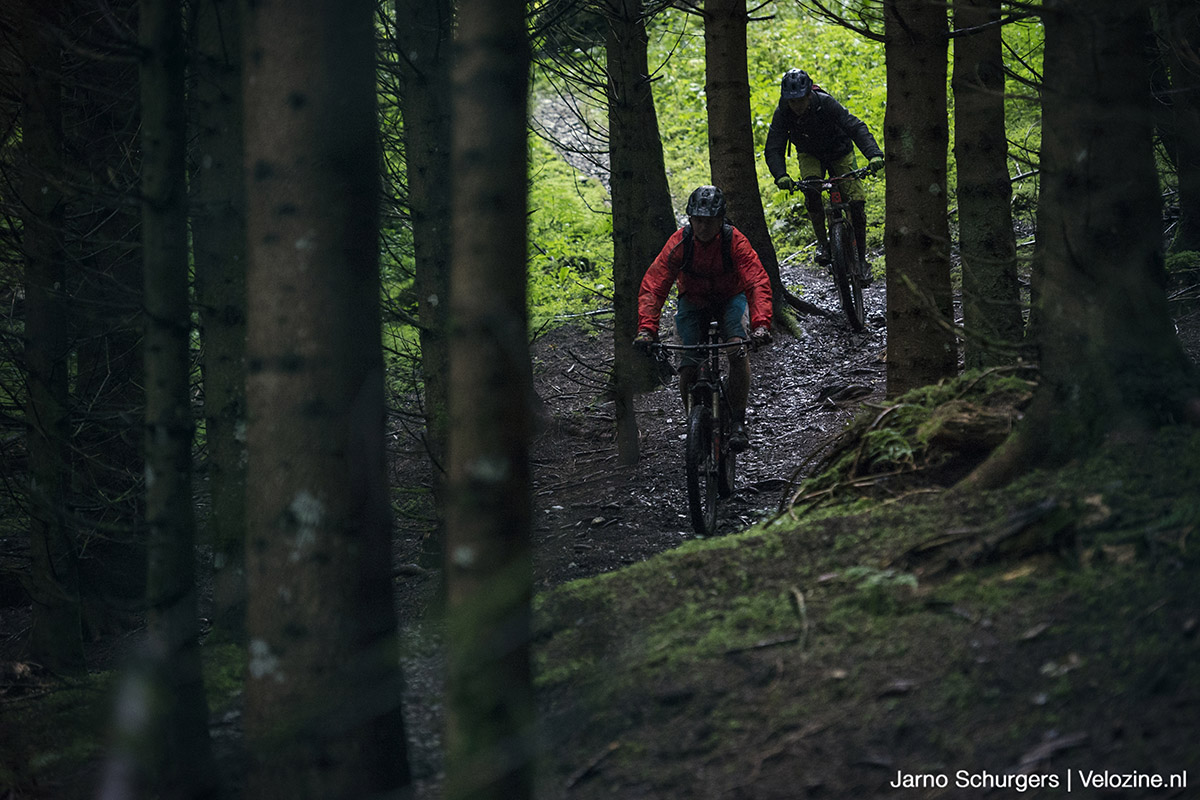 Google zegt dat we nog maar vijftien kilometer hebben te gaan, maar als we uit het raam kijken zien we eigenlijk nog niks spannends. ‘We’, dat zijn fotograaf Jarno Schurgers, m’n fietsmaat Roy Groenewegen en ik. De omgeving is heuvelachtig en zeker vergeleken met Nederland magisch mooi, maar echt trail-materiaal zie ik er nog niet in. Hebben we het verkeerde adres in de navigatie gezet? Terwijl de kilometers aftellen, wordt het terrein steeds mooier. En de weg neemt ons nu mee omhoog, de bergen in. Rechts van ons stroomt een rivier die, naarmate we dichter in de buurt komen, steeds harder gaat stromen. De weg gaat al snel over in haarspeldbochten, betrouwbare signalen van een goed avontuur. Het landschap verandert nu snel. De bergen links en rechts van ons worden groter en groter en vooral steeds steiler!
