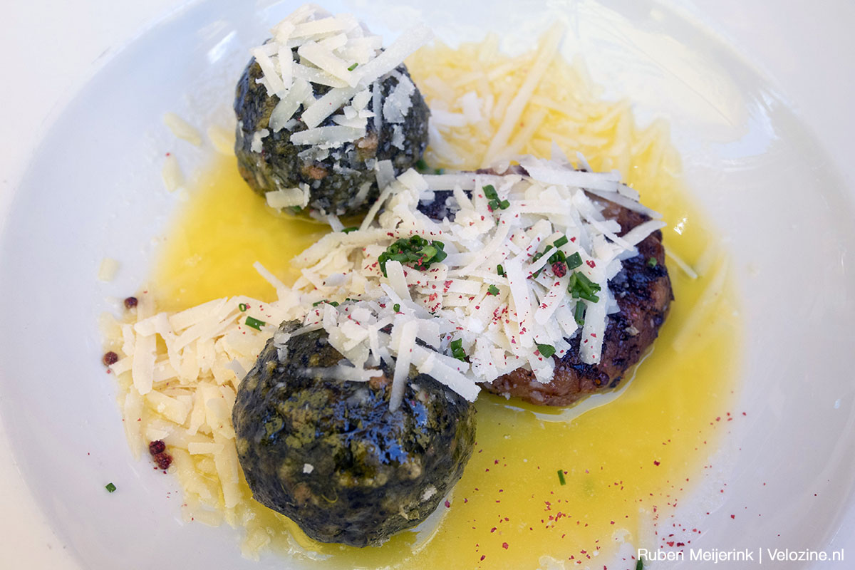 En bij die lunch, juist dáár wordt het pas echt afzien… We moeten drie knödels van de buitencategorie bedwingen. Gevolgd door een kuitenbijter van een toetjesknödel. Superlekker, maar ook héél veel, zelfs voor mijn eetlust-van-kliko-proporties. Maar: ik heb van mijn mamma geleerd dat ik mijn bordje leeg moet eten en buffel me er doorheen. Ik heb haar even gebeld en ze was trots op me…
