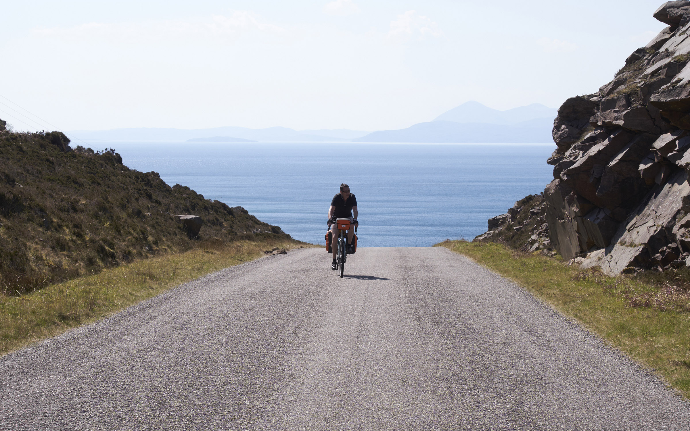 Inverness en Applecross zijn de vaste punten op ons virtuele planbord. Inverness vanwege de luchthaven om in en uit te vliegen en Applecross omdat daar de steilste klim van Groot-Brittannië te vinden is: de Bealach na Bà. De Schotse naam van deze bergpas naar het dorpje Applecross op het gelijknamige schiereiland, is een verbastering van het Keltische Bealach nam Bò, dat zoiets betekent als ‘Koeienpas’. Voordat de weg in het begin van de twintigste eeuw aangelegd werd, was de pas namelijk niet meer dan een voetpad waarover de koeien en schapen van en naar de kust geleid werden. De enige andere manier om Applecross te bereiken was via de zee.