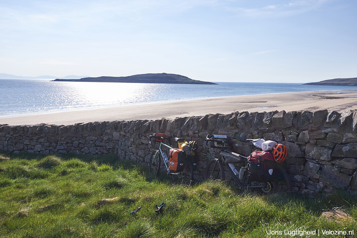 Applecross is niet het enige dat onze Schotlandreis bijzonder maakt. Het wat vlakkere deel bij Inverness waar je tussen de landerijen fiets, is minstens zo fraai. Of de bossen bij Strathconon, slapen óp het strand van Gairloch met uitzicht op The Isle of Skye en de volkomen verlaten bergpassen van de Highlands. Het is eigenlijk allemaal heel speciaal. Maar als ik dan tóch moet kiezen als mooiste en meest bijzonder, dan is het onze overnachting in Glenuaig. Deze bergpas is de kortste weg richting Applecross en volgens de kaart fietsbaar, want er staat tenslotte een stippellijntje. De praktijk is echter iets weerbarstiger.