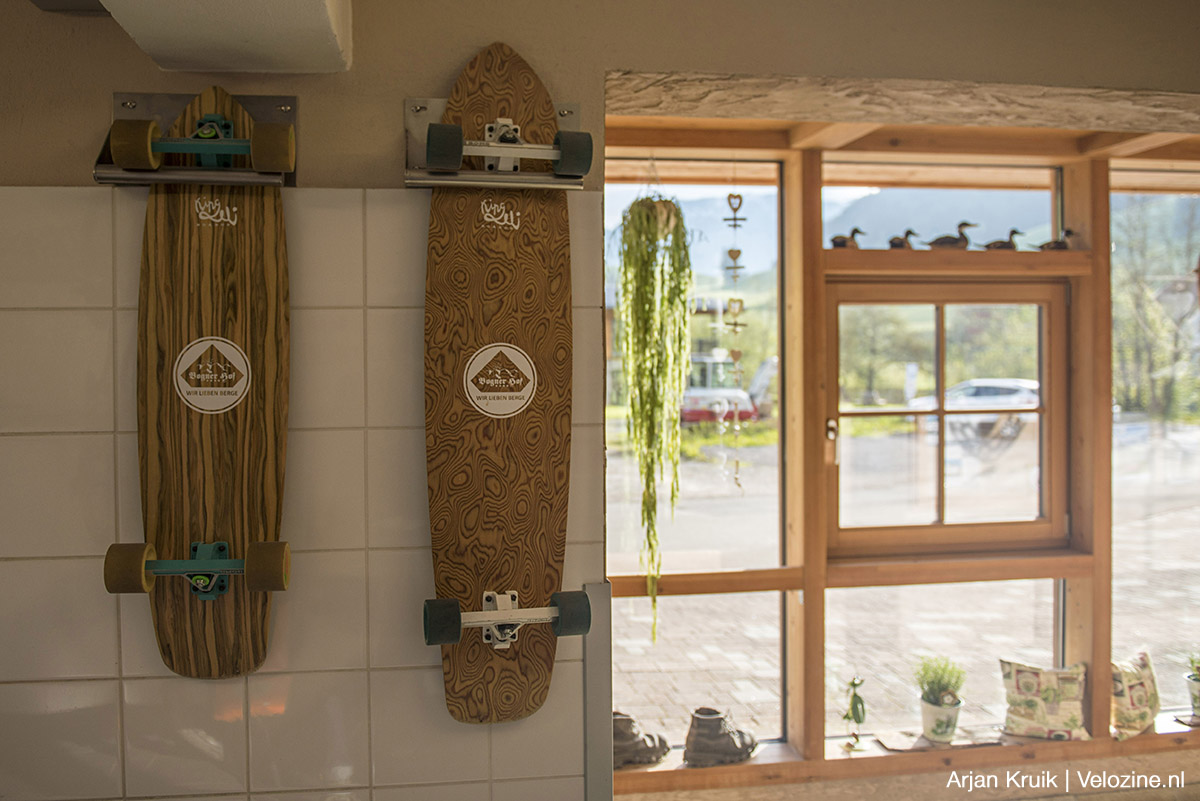 Als we twee grote glazen later aftaaien – een klein biertje bestellen kan hier niet, de goedgevulde barman noemt dat geringschatten kinderbier – belooft Hans morgenochtend bij het frühstück even langs te komen om een gravelroute samen te stellen. Echter, als we aan het buitengewoon rijk gedekte ontbijt zitten, schuift niet Hans aan, maar zijn zoon Florian. “M’n vader is een echte wielrenner, die snapt dat offroad-rijden niet. Daarom doe ik het mountainbiken hier. En omdat veel gravelroutes deels ook mountainbikeroutes zijn, heb ik het gravelen op me genomen. Voor ons is het nog ontdekken of dat werkt. In ieder geval zien we dat steeds meer gasten een gravelbike meenemen.”