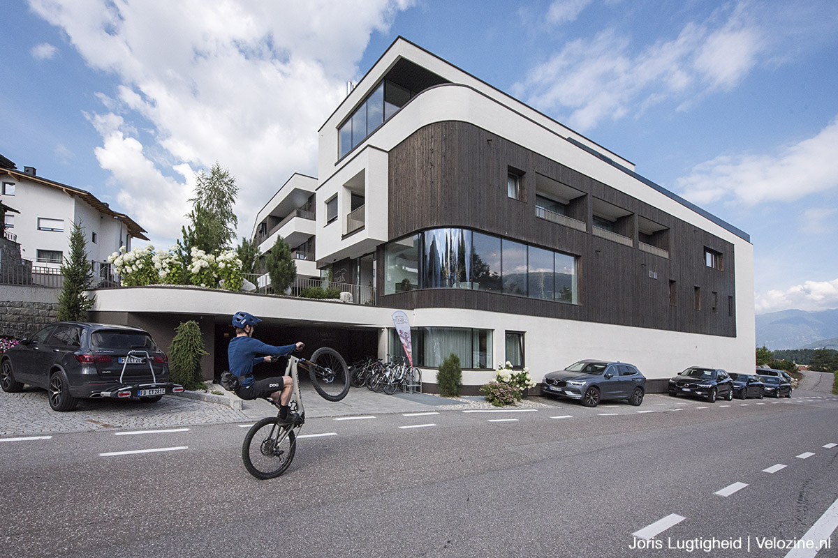 Arjan, Joris en Sebastiaan verbleven in Alpinhotel Keil in Olang, een dorp even ten oosten van de Zuid-Tiroolse stad Bruneck. Een prima plek, want precies tussen de Alpen en de Dolomieten, zodat je in alle windrichtingen verzekerd bent van uitdagende routes. Alpinehotel Keil is lid van de gespecialiseerde hotelorganisatie BikeHotels Südtirol, wat garandeert dat er goede faciliteiten voor bikers zijn. Ook de tour over de Plätzwiese is, inclusief de afspraak met gids Michael, door Keil georganiseerd.