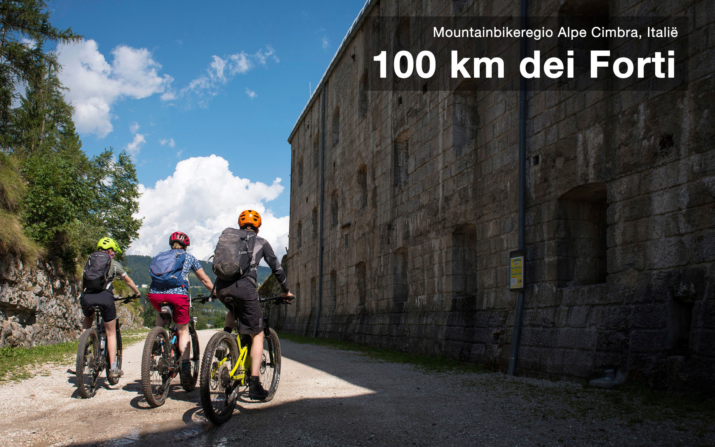 Met mijn gezin ben ik op vakantie in Alpe Cimbra, een gebied in de Italiaanse provincie Trentino, een kleine dertig kilometer ten zuiden van de stad Trento. Gedurende drie dagen verkennen we op gehuurde e-mtb’s de altipiani, de hoogplateaus die dit gebied kenmerken. Nou ja, verkennen… we rijden niet zomaar wat heen en weer, maar volgen samen met bikeguide Daniela Vecchiato een uitgepijlde mountainbikeroute: de 100 Chilometri dei Forti, de 100 Kilometers der Forten.