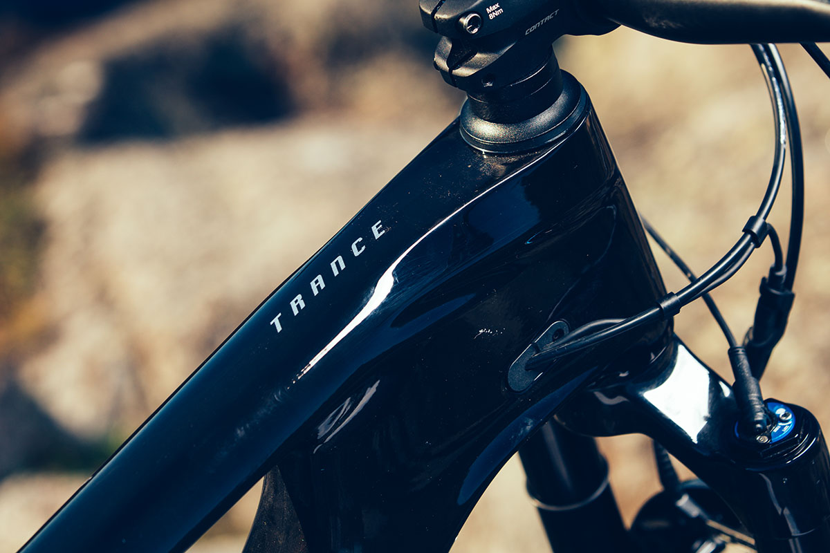 Wat verder nog opvalt is dat dankzij het nieuwe frameontwerp de bovenbuis bij de framemaat S hoger staat. De ‘standover height’ is van 708 mm verhoogt naar 729 mm. Dat terwijl je bij de M, L en XL frames juist 10 tot 20 mm méér ruimte krijgt. Een ander ‘dingetje’ is dat de zitbuis bij het kleinste frame, is verlengd van 380 naar 420 mm. 40 mm méér dus. Normaal zou dat betekenen dat er daardoor minder ruimte is voor een dropperzadelpen met méér droplengte. En dat is juist iets waar veel merken tegenwoordig op inzetten: méér droplengte. Maar omdat de zitbuis bij de Trance een knik heeft, wordt de maximale insteeklengte (en daarmee samenhangend de totale lengte van de dropperzadelpen) vooral door die buisvorm beperkt.