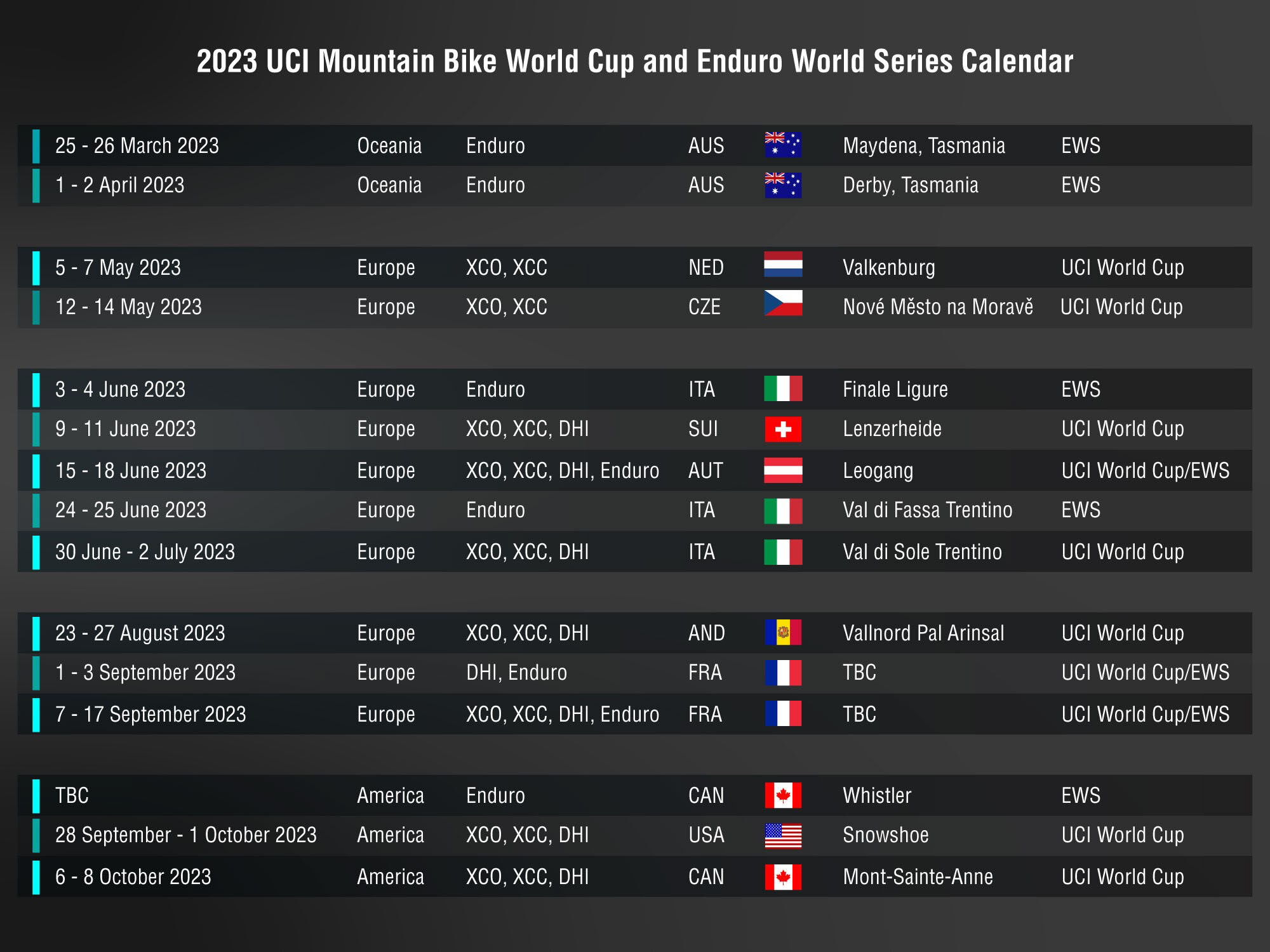 “We also look forward to introducing new hosts for some rounds while welcoming back traditional venues that have been greatly appreciated over the years. The partnership between the UCI and Warner Bros. Discovery will significantly increase the international exposure for mountain bike, allowing the sport to continue to grow globally.”