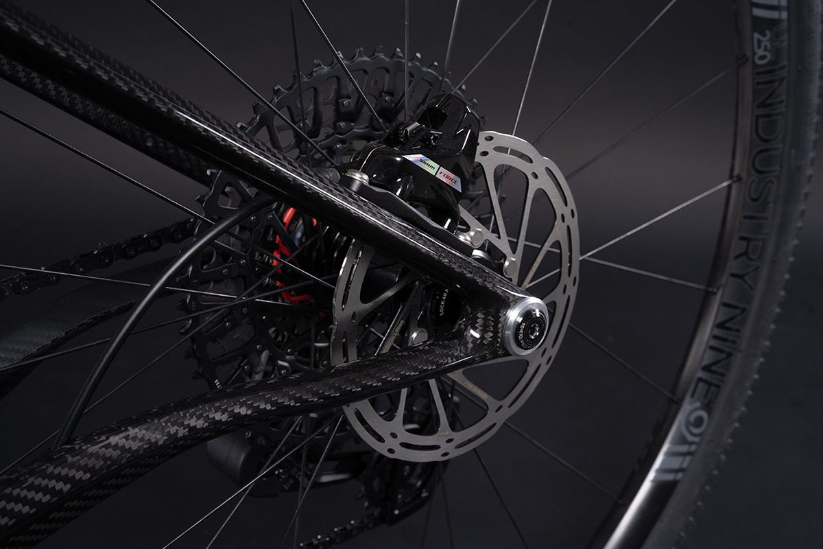 Maar Antidote gaat met de Pathseeker verder en brengt hem ook als fullsuspension-gravelbike, met dus eveneens 20 millimeter veerweg achteraan. Daarbij baseert Antidote de achtervering op flex in de staande en vooral de liggende achtervork. De staande achtervork is vervolgens met de voordriehoek van het frame verbonden via een gelagerd excentrisch lagerpunt. Nano Flex noemt Anitdote deze constructie, waarbij in het excentrische draaipunt nog een elastomeer is verwerkt om de 20 millimeter veerweg te dempen. Deze zijn in verschillende hardheden verkrijgbaar, zodat Antidote de Pathseeker fullsuspension kan afstemmen op jouw gewicht. In tegenstelling tot de voorvork is de achtervering niet te blokkeren. Het geheel zou bovendien onderhoudsvrij zijn, maar alle onderdelen zijn eenvoudig los te halen en te vervangen.