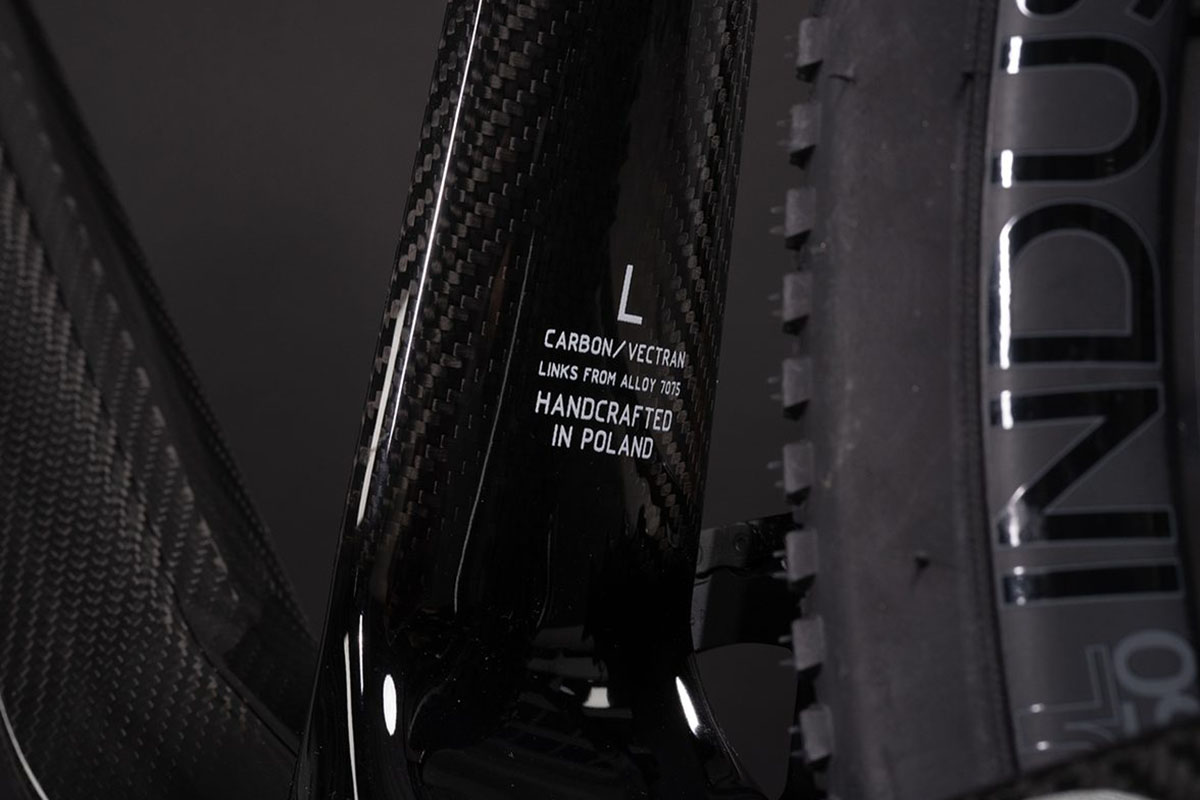 Met z’n zeer laag gepositioneerde bovenbuis en de hoekige vormen is het Pathseeker-frame ontegenzeggelijk een opvallende verschijning. Antidote maakt de Pathseeker-frames in eigen huis uit een combinatie van carbon, vlas, Vectran en biologische hars. Vectran is een synthetische vezel gemaakt van polymeer en wordt in z’n flexibele vorm gebruikt in het karkas van banden. Antidote gebruikt het in z’n carbon frames om specifieke plekken extra te versterken.