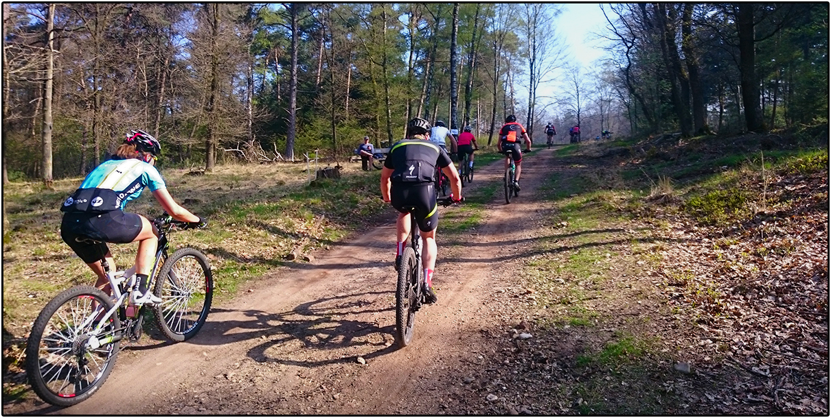 Pas aan het einde van de eerste ronde beginnen de gaten steeds groter te worden. Gelukkig geen motorcrossbaan in de tweede ronde, geen opstoppingen meer bij elke grotere boomwortel of steile klim. Mede doordat er veel beter door te rijden is, rijden we in de tweede ronde vrijwel dezelfde gemiddelde snelheid. Bij de finish is het gezellig druk, zoals bij een marathonfinish hoort: een sfeer van vermoeide tevredenheid, of tevreden vermoeidheid. Alleen de rij voor de patatkraam lijkt verdacht veel op de rij voor dat ene steile eerste klimmetje…