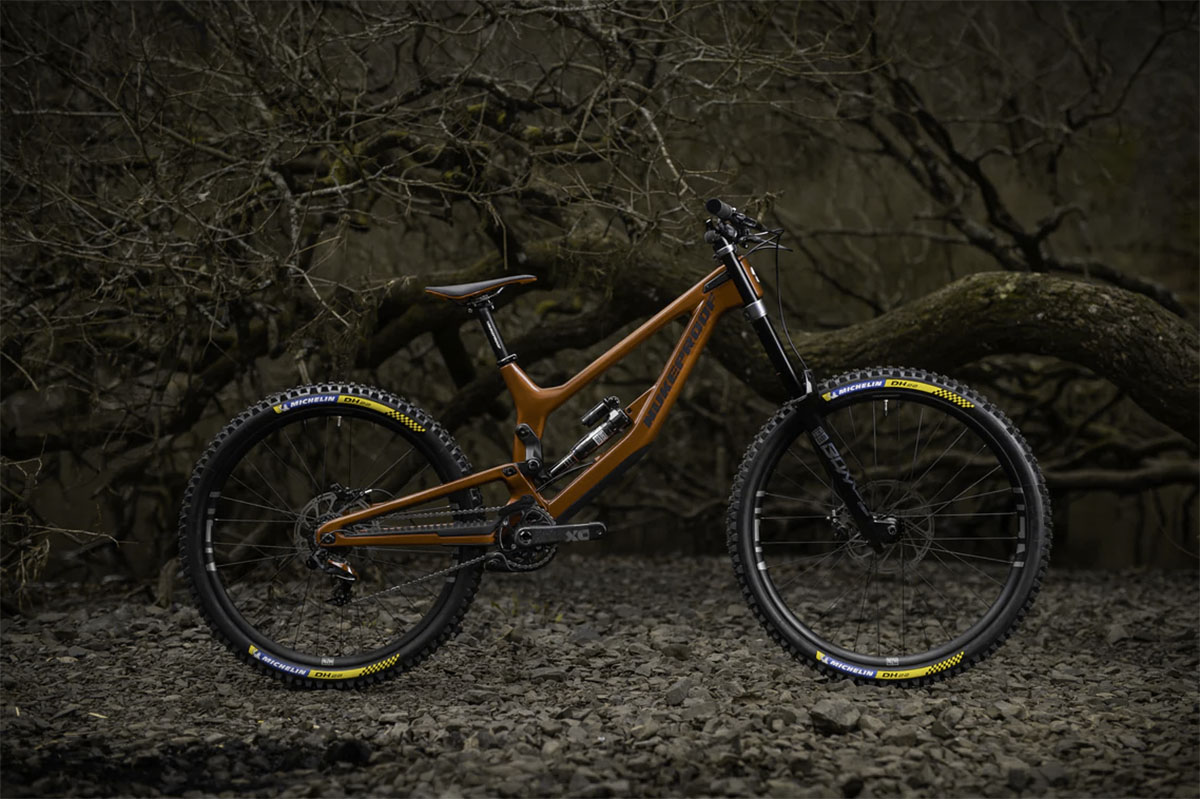Maar bij naafjes en carbon sturen bleef het niet. De Nukeproof Reactor was een unieke mountainbike met een geveerde voorvork met hevels, waarbij de demper ín de balhoofdbuis gepositioneerd was.
